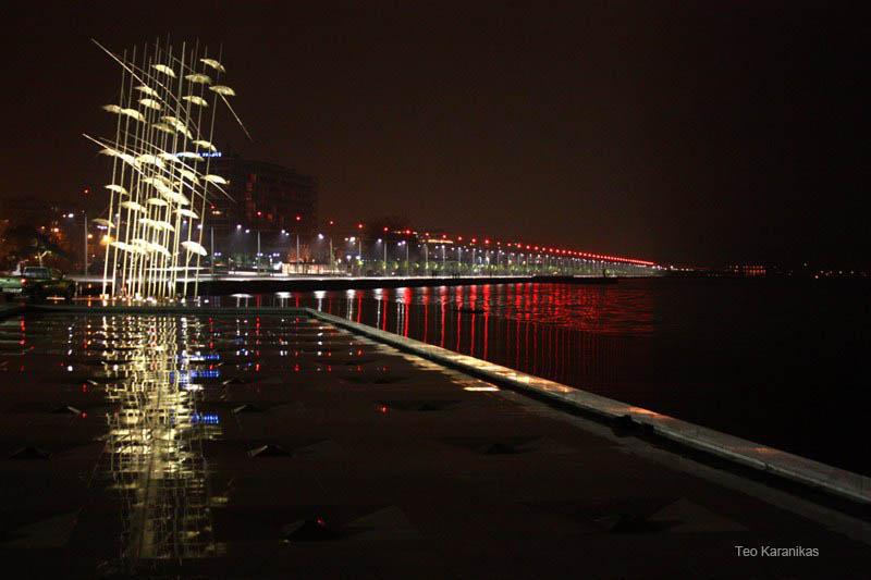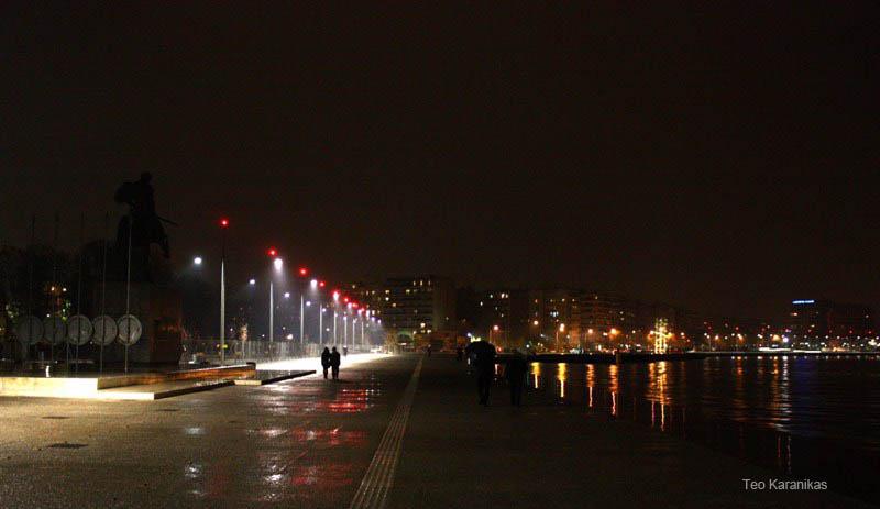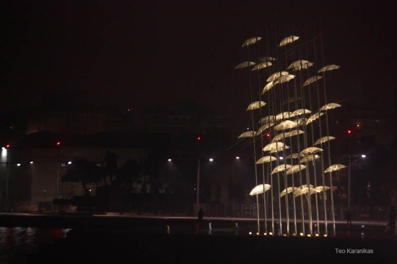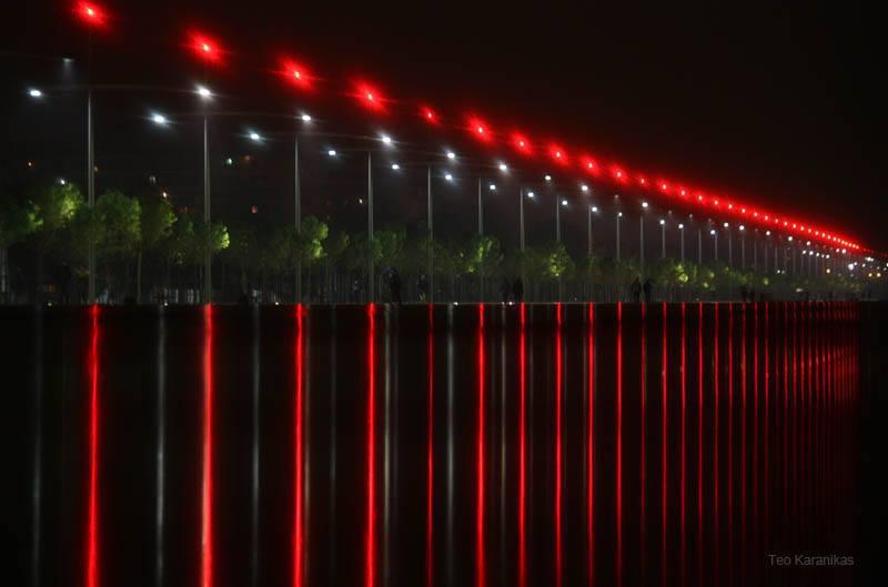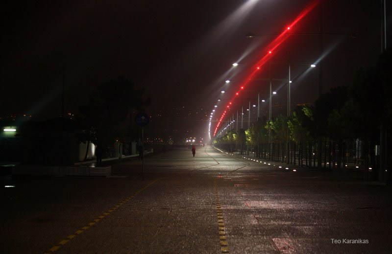Σιγά που θα αντέχαμε να περιμένουμε μέχρι αύριο. Με το που έπεσαν οι φράκτες το απόγευμα, οι πιο ανυπόμονοι εγκαινιάσαμε το πλακόστρωτο. Η βροχή δεν μας πτόησε. Δεν ήμασταν πολλοί αλλά μια κυρία με την οποία διασταυρωθήκαμε δεν μπορούσε να κρύψει τη χαρά περπατώντας ανάλαφρη με την χρωματιστή της ομπρέλα. “Επιτέλους μας την έδωσαν” μου φώναξε φιλικά με ένα πλατύ χαμόγελο. Αυτά τα φώτα κατάρτια είναι από τους ωραιότερους -σχεδιαστικά- φωτισμούς δημόσιου χώρου που έχω δει. Το βράδυ η αίσθηση ότι περπατάς σε ένα απέραντο κατάστρωμα είναι το ίδιο έντονη.