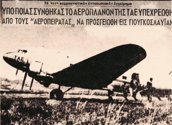 Μετά τον πόλεμο, την περίοδο του εμφυλίου, η πρώτη αεροπειρατεία της Ελλάδος πραγματοποιείται στην πτήση από Αθήνα για Θεσσαλονίκη, από έξι νεαρούς φοιτητές που απαιτούν το αεροπλάνο να μην προσγειωθεί στην Θεσσαλονίκη και να συνεχίσει για Γιουγκοσλαβία, όπου και προσγειώνεται. Οι αεροπειρατές το εγκαταλείπουν και αυτό επιστρέφει στην Θεσσαλονίκη.