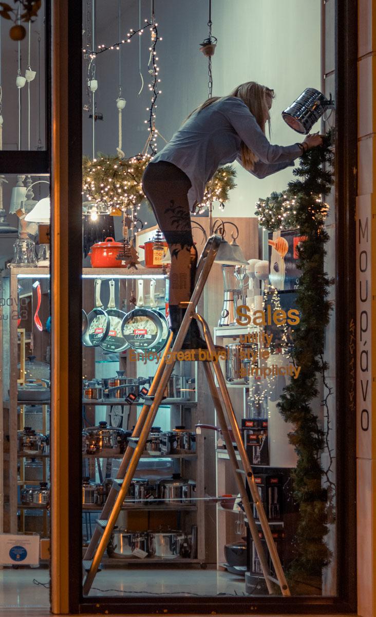 Κι ενώ η πόλη δείχνει όλα αυτά τα χρόνια ότι δεν μπορεί να σχεδιάσει σωστά Χριστούγεννα, οι βιτρίνες των καταστημάτων, στην πιο αγνή έκφραση του Christmas mood, βάζουν τα δυνατά τους για να μας παρασύρουν στο έλκηθρο της ανεμελιάς…