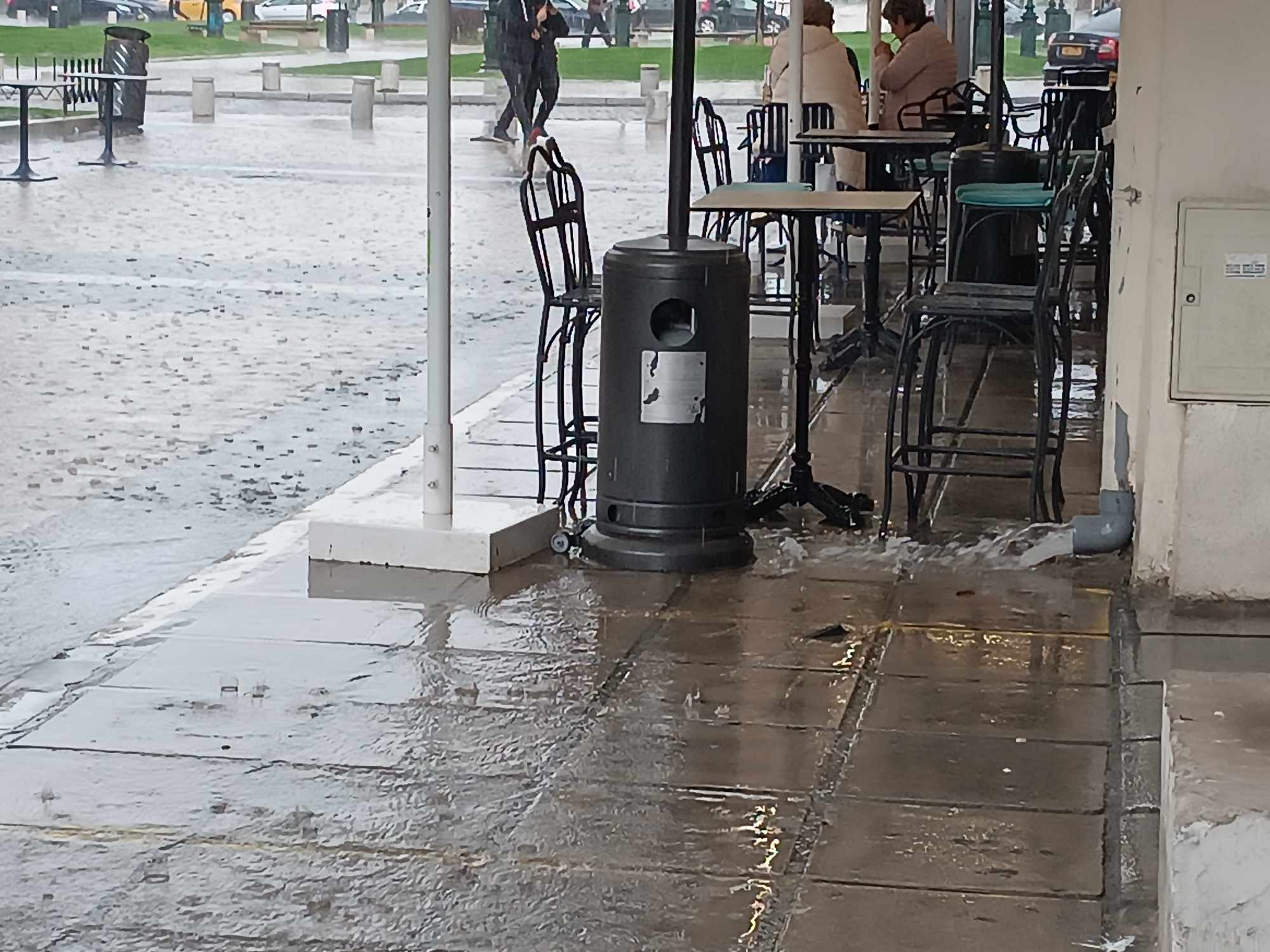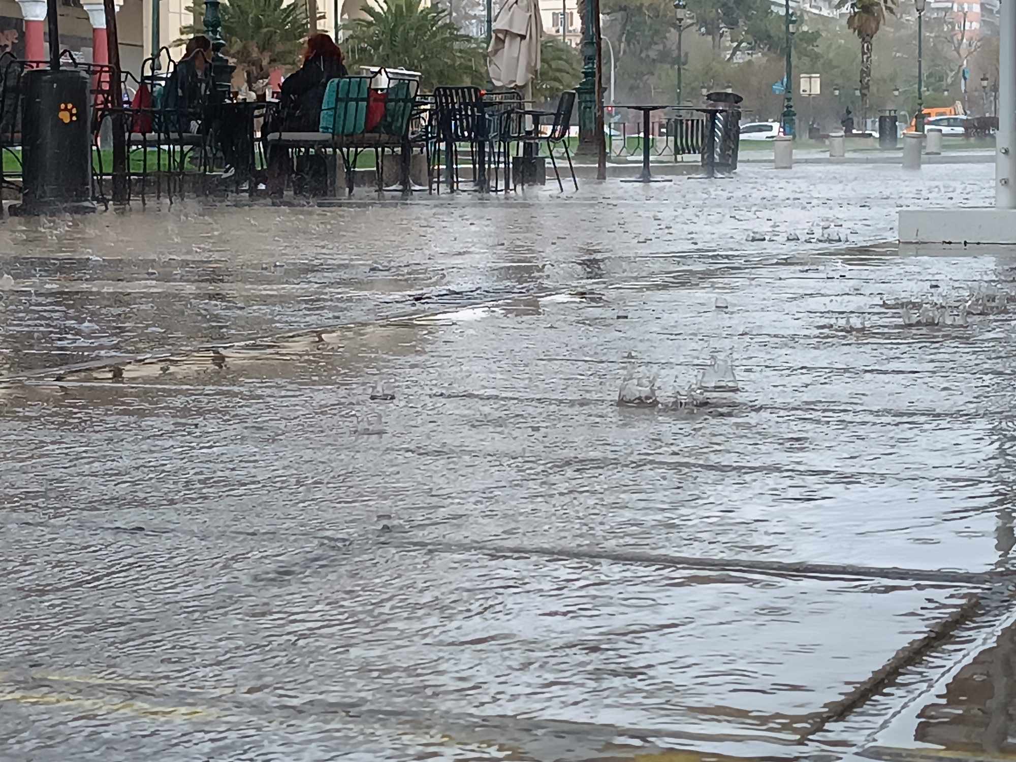 Σε πολλούς δρόμους, το νερό δημιουργεί ήπια πλημμυρικά φαινόμενα, όπου δεν υπάρχουν διαφυγές και ανοιχτές αποχετεύσεις για τα όμβρια ύδατα.