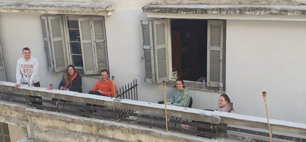 Ισπανοί φοιτητές Erasmus στέλνουν το μήνυμα «Μένουμε σπίτι» στην πατρίδα τους.