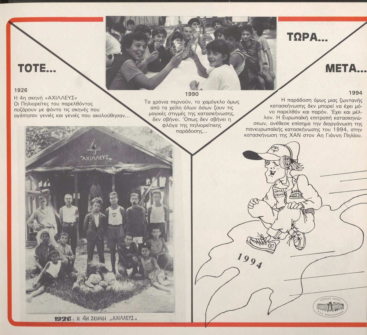 Άλλωστε δεν είναι τυχαίο πως η κατασκήνωση του Πηλίου, παρά τη μικρή της έκταση και τις στοιχειώδεις υποδομές, επιλέχθηκε να φιλοξενήσει την ευρωπαϊκή κατασκήνωση το ’94, καλωσορίζοντας δεκάδες παιδιά απ’ όλο τον κόσμο.