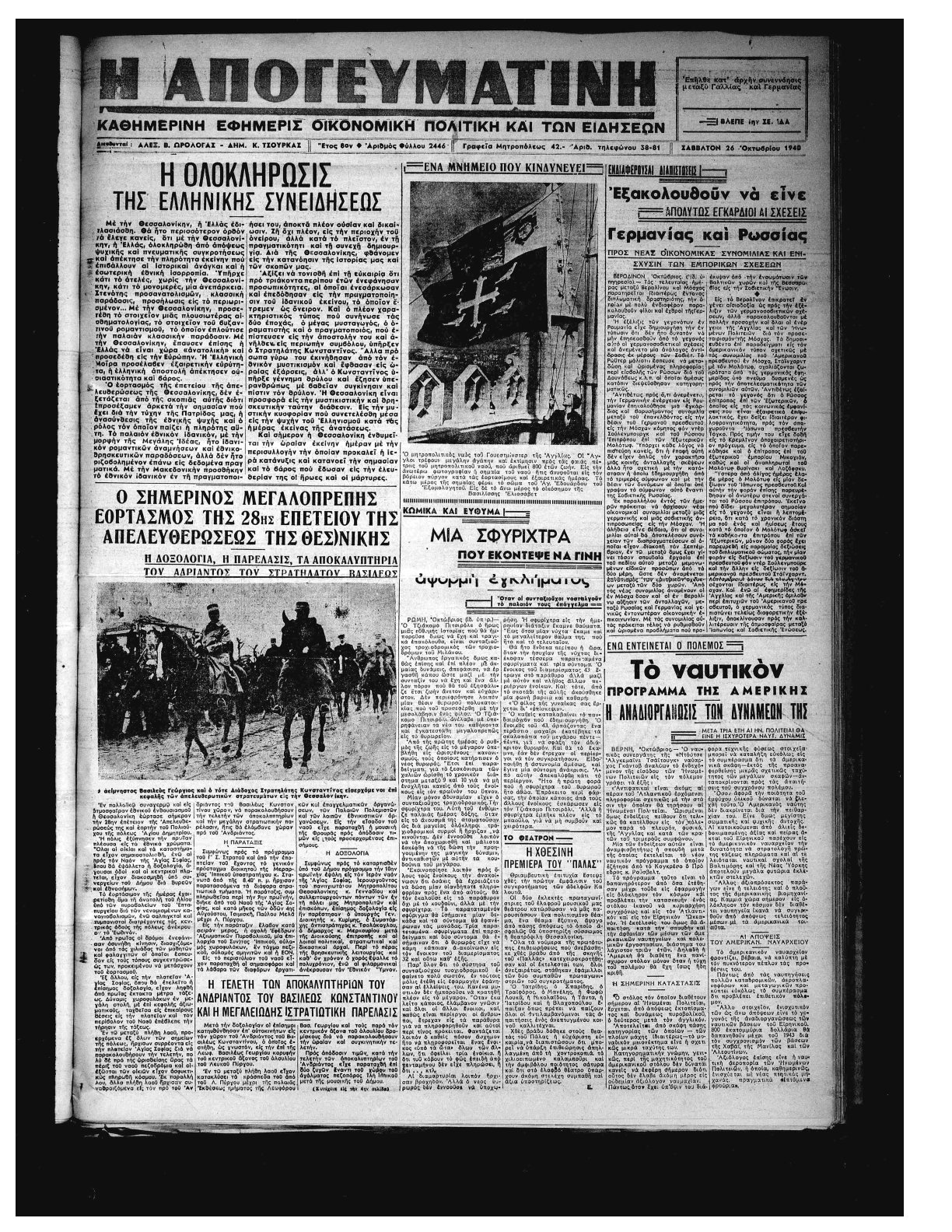 Το αναλυτικό πρόγραμμα για τον εορτασμό της επετείου απελευθέρωσης της Θεσσαλονίκης έδινε η «Απογευματινή» μια μέρα πριν, στο φύλλο της 25ης Οκτωβρίου.