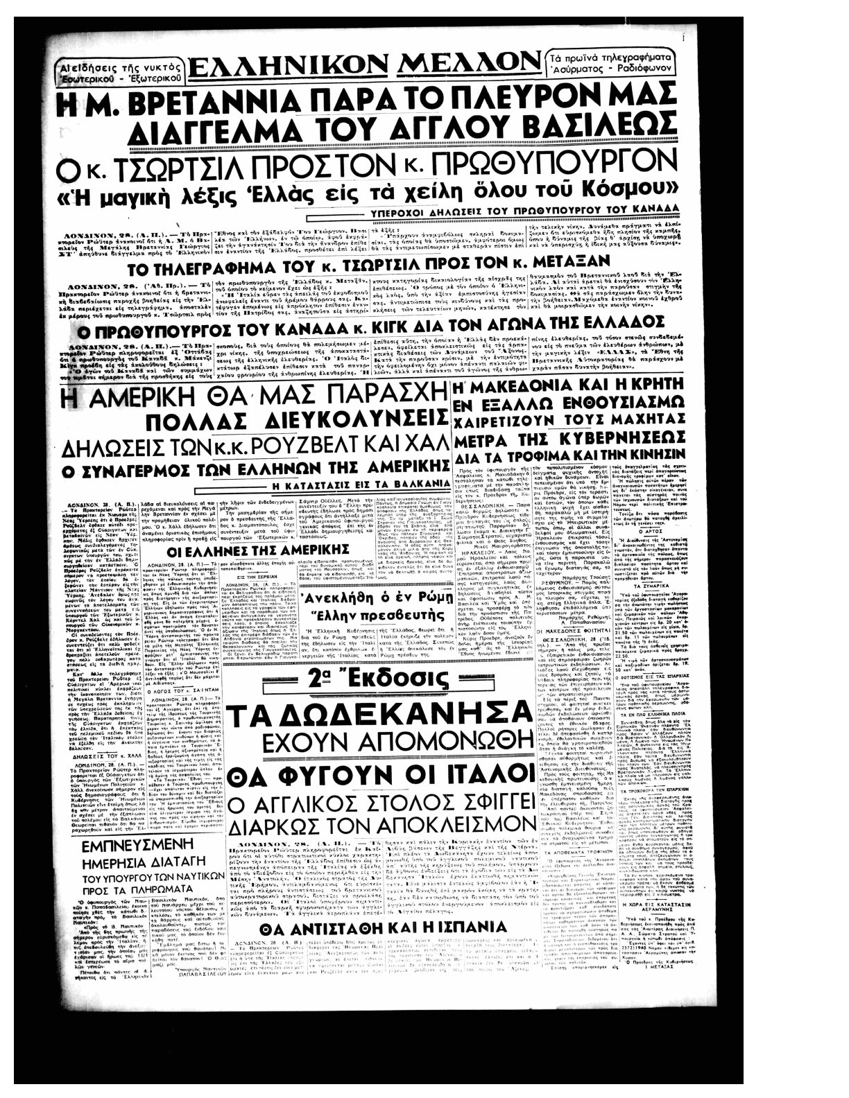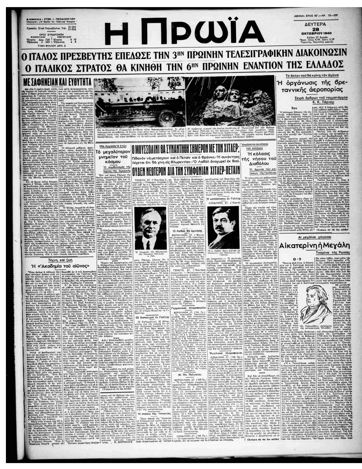28 Οκτωβρίου 1940-Ντοκουμέντο: Τι έγραφαν οι εφημερίδες λίγο πριν και λίγο μετά την κήρυξη του πολέμου