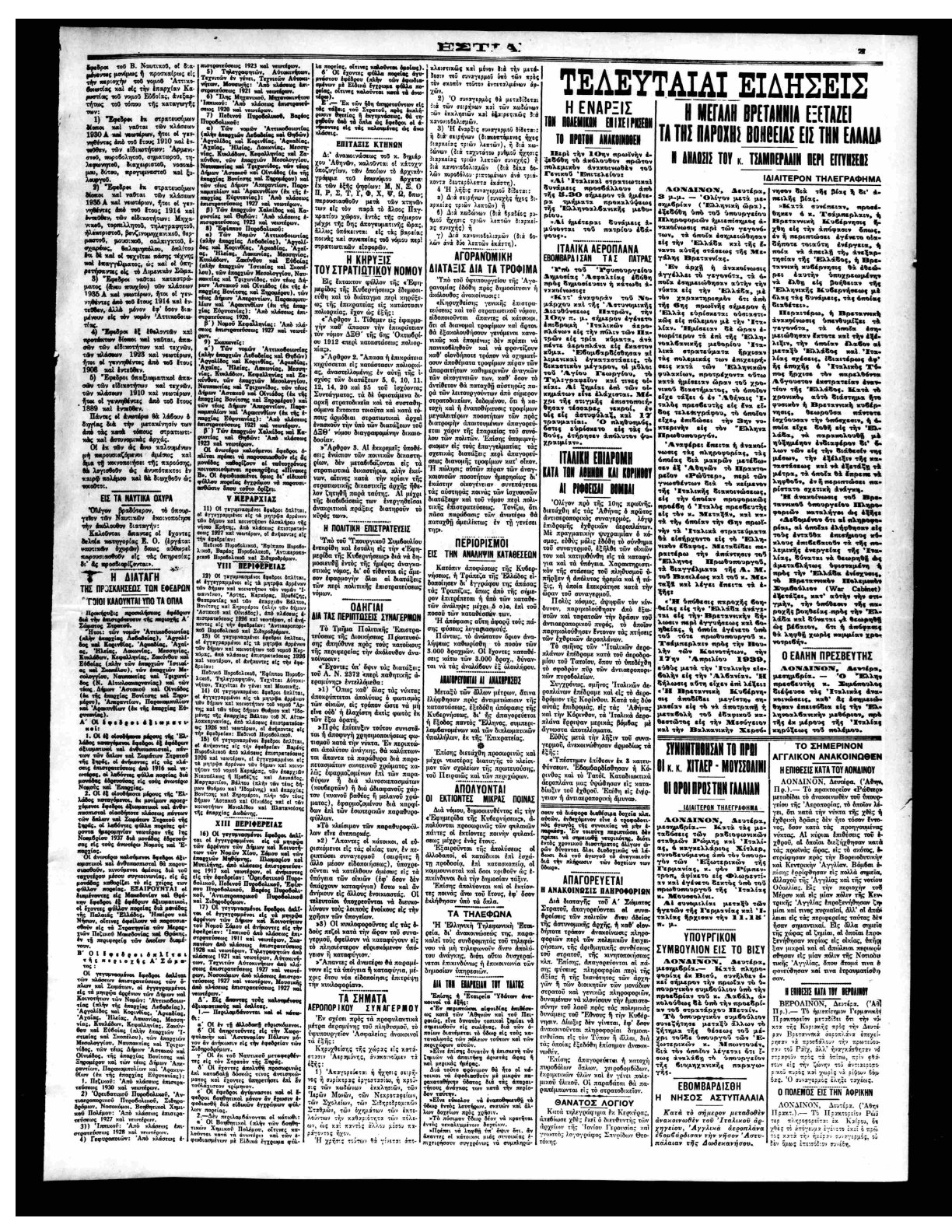 Στη σελίδα 2 «Νέα και Περίεργα», μυθιστορήματα σε συνέχεια και διαφημίσεις θεαμάτων. Στη σελίδα 3 όλες οι οιδηγίες για τη νέα κατάσταση που διαμορφώνεται.