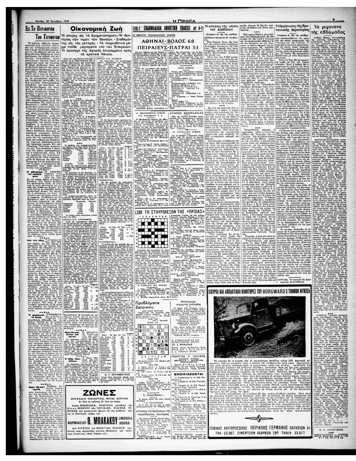 Στις μέσα σελίδες, σκακιστικοί γρίφοι, πρεμιέρα «Μαντάμ Μποβαρύ» στο Ρεξ, αθλητικά και διαφημίσεις για κινητήρες φορτηγών.