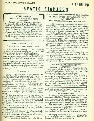 «Τα ραδιόφωνα της Αθήνας και του Λονδίνου μετέδωσαν χτες και σήμερα επανειλημμένα την είδηση για την επίθεση των τμημάτων του ΔΣΕ στη Θεσσαλονίκη. Το Λονδίνο μετέδωσε ότι δυνάμεις ανταρτών έβαλαν με όλμους των 81 χιλιοστών κατά της Θεσσαλονίκης. Στη χτεσινή εκπομπή του, είπε ότι ρίχτηκαν 12 βλήματα, ενώ σήμερα το πρωί είπε πως ρίχτηκαν 40 βλήματα. Από τα βλήματα που ρίχτηκαν, 2 έπεσαν στα ξενοδοχεία όπου μένανε τα μέλη της Βαλκανικής Επιτροπής, ένα σε κτίριο που μένουνε Άγγλοι και 2 άλλα σε γκαράζ και αποθήκες βενζίνης. Η είδηση, για το βομβαρδισμό της Θεσσαλονίκης, προκάλεσε σύγχυση και πανικό στους μοναρχοφασιστικούς κύκλους της Αθήνας.