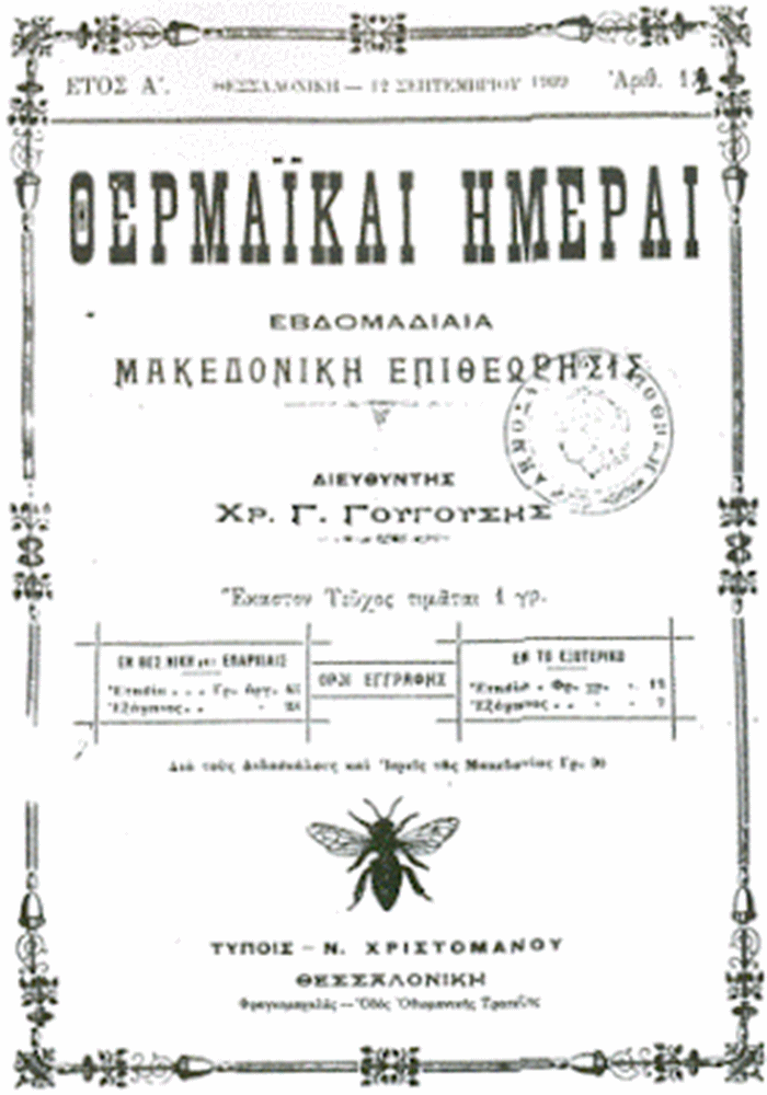 Το δεύτερο περιοδικό που εκδόθηκε ήταν οι Θερμαϊκαί Ημέραι (1909) με διευθυντή το δημοσιογράφο Χρ. Γ. Γουγούση και συνεργάτες τους Νικ. Θ. Γούζαρη, Θ. Παπαθανασίου, Μ. Θ. Γεωργιάδου, Α. Μεσολογγίτη, Γ. Χατζηκυριακού, Ι. Τσικόπουλο.