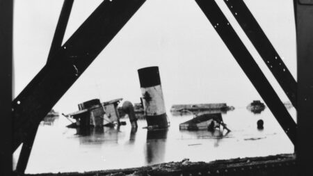 Σημείωση: Οι φωτογραφίες είναι από το αρχείο του Σπύρου Κουζινόπουλου, τμήμα μιας σειράς φωτογραφιών που δείχνουν τις καταστροφές που προκάλεσαν οι κατακτητές στο λιμάνι της Θεσσαλονίκης τη μέρα της αποχώρησής τους από την πόλη, στις 30 Οκτωβρίου 1944.