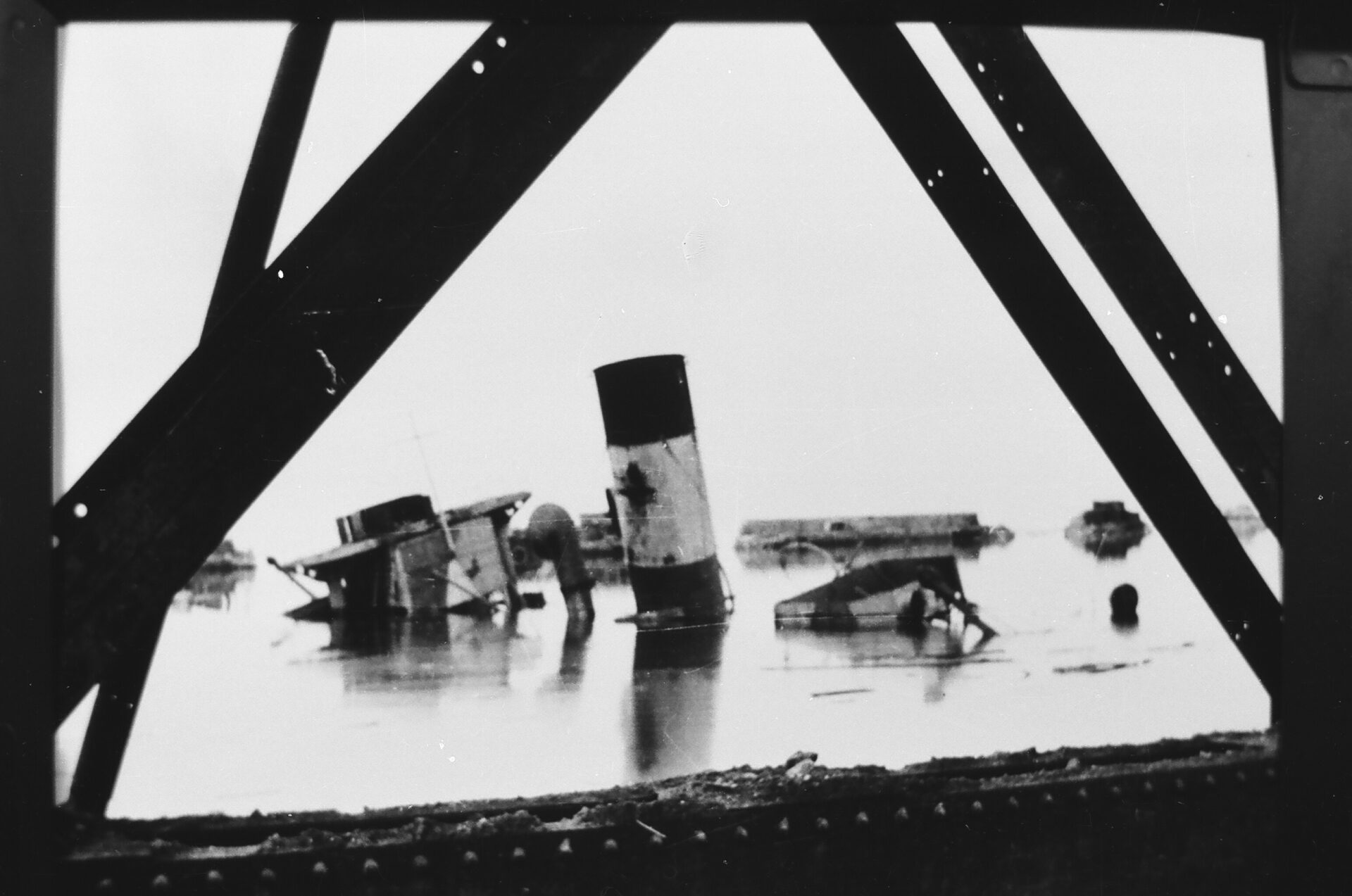 Λίγο πριν γκρεμιστούν από τη Θεσσαλονίκη οι Γερμανοχιτλερικοί, έφραξαν την είσοδο του λιμανιού με 6-8 βουλιαγμένα καράβια. Ένα πλοίο Σουηδικό, ένα Ιταλικό, ένα Ελληνικό και 5-6 ακόμη μικρότερα, είναι τα θύματα της χιτλερικής καταστροφικής μανίας.