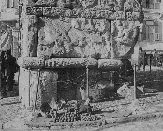 … και μαναβάκια, με τα κασελάκια και τα κοφίνια της πραμάτειας τους να ακουμπούν το μνημείο…