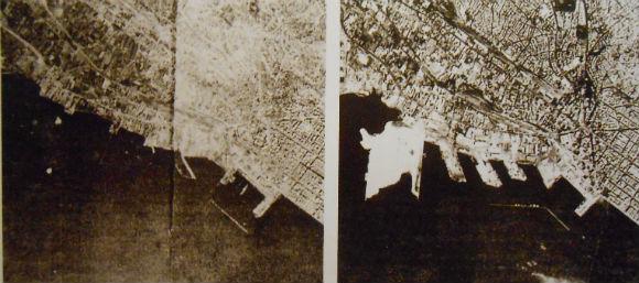 Αεροφωτογραφία της περιοχής το 1945(αριστερά) με κατασκευασμένες μόνο 2 προβλήτες και το 1992 με τις 6 προβλήτες ολοκληρωμένες.