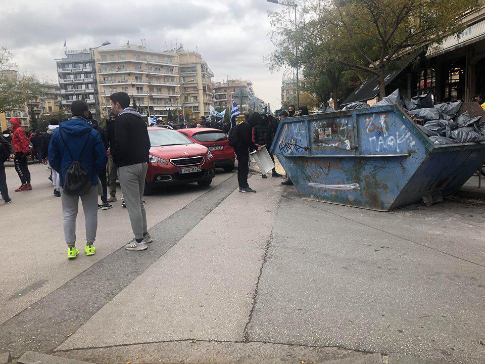 Στην Αγίου Δημητρίου και το ΥΜΑΘ κατέληξε εδώ και λίγη ώρα η μαθητική πορεία για τη Μακεδονία η οποία ξεκίνησε το πρωί στις 11 από τον Λευκό Πύργο περνώντας από το κέντρο της πόλης.