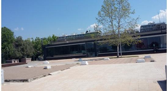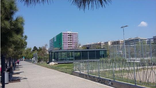 Καθώς πλησιάζουμε στο τέλος της διαδρομής, συναντούμε το 7ο και τελευταίο γυάλινο περίπτερο, ανάμεσα στον “ Κήπο του Νερού” και τον “Κήπο της Μουσικής”, που συνορεύει με την περιοχή του Μεγάρου Μουσικής Θεσσαλονίκης. Κι εδώ, όπως και προηγουμένως για το 6ο περίπτερο, θα μπορούσε, ενδεχομένως, να παραχωρηθεί πρόσθετος χώρος για τραπεζοκαθίσματα αν αυτό φαίνεται σε κάποιους σκόπιμο ή συμφέρον. Προσωπικά, αμφιβάλλω πολύ αν τεκμηριώνεται η ανάγκη αλλά και η οικονομική βιωσιμότητα ενός ακόμη αναψυκτηρίου στο σημείο αυτό, τόσο κοντά στα προηγούμενα.