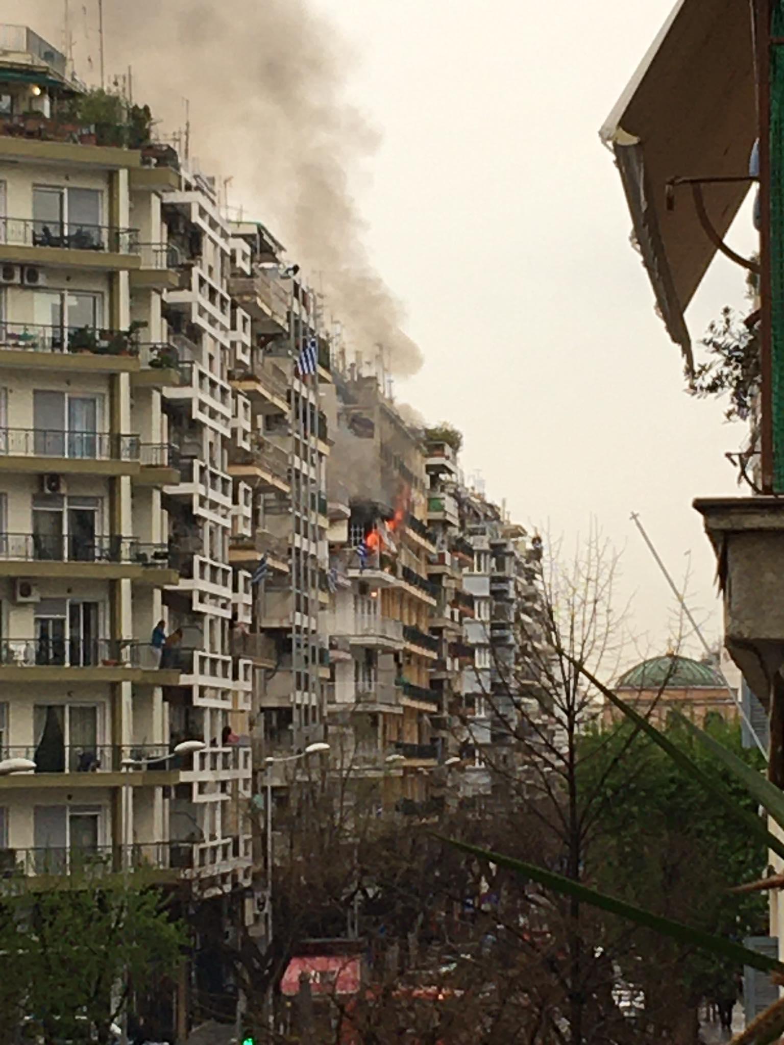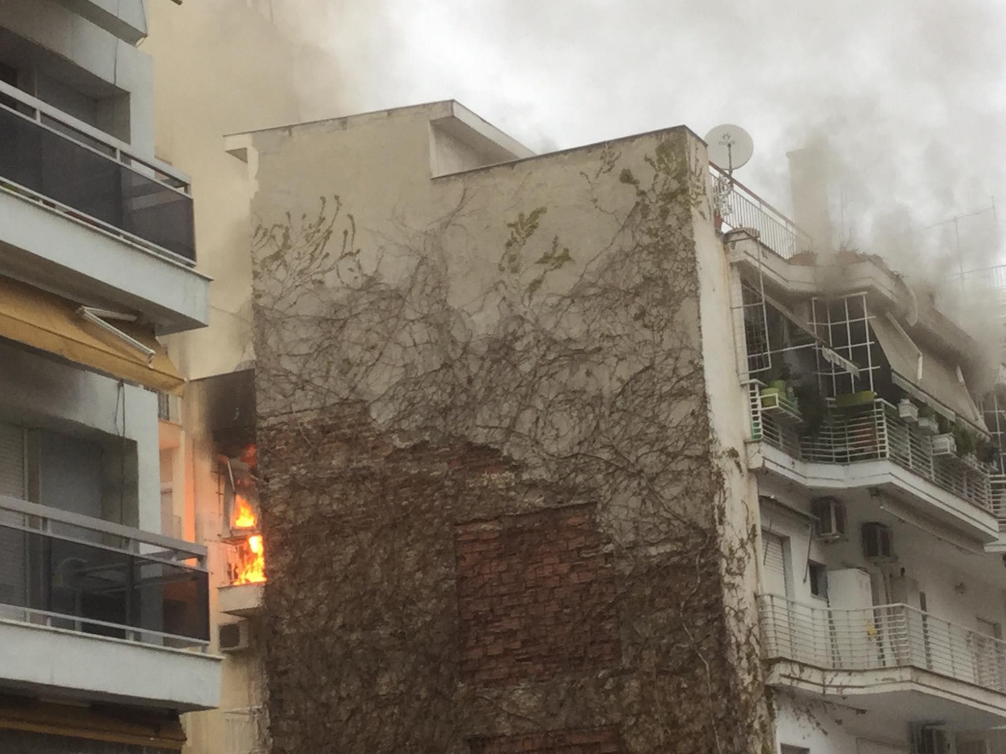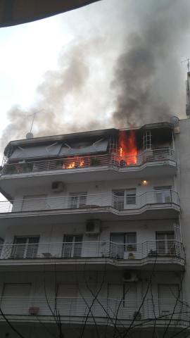 Η φωτιά ξέσπασε στο πίσω μέρος του διαμερίσματος, πιθανότατα στην κουζίνα και πήρε γρήγορα διαστάσεις και αυτή τη στιγμή καίγεται όλο το διαμέρισμα.