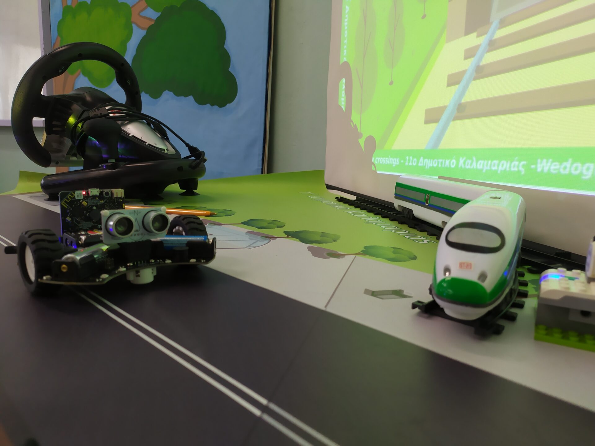 Όπως είπε, «το “wedoguard:railroad crossings” Ρομποτικό Σύστημα Προστασίας Διαβάσεων Τρένων προστατεύει τον απρόσεκτο ή βιαστικό οδηγό από σύγκρουση με διερχόμενο τρένο. Το σύστημα αντιλαμβάνεται και ειδοποιεί τα διερχόμενα αυτοκίνητα, τα οποία μπορούν να συνεχίσουν να κινούνται ελεύθερα εκτός από εκείνα που βρίσκονται κοντά στην ειδικά εξοπλισμένη με μαγνητικό υλικό διάβαση, οπότε και ακινητοποιούνται αυτόματα, αποτρέποντας το ατύχημα τόσο για τον βιαστικό, που νομίζει ότι προλαβαίνει να περάσει όσο και από τον απρόσεκτο οδηγό. Η εργασία για την κατασκευή του συστήματος μας πήρε ένα τρίμηνο μαθημάτων, στα οποία συμμετείχαν όλοι οι μαθητές της Στ’ τάξης».