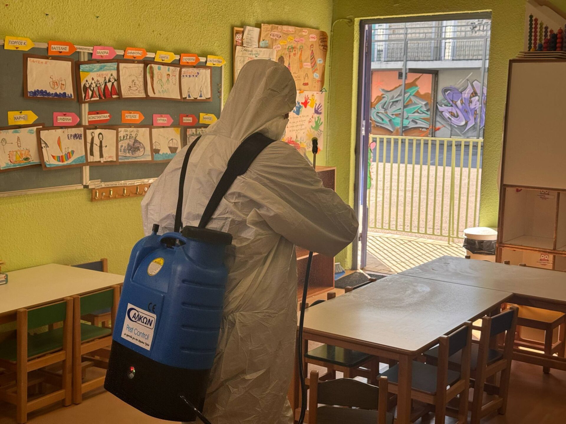 Καλαμαριά-ΕΙΚΟΝΕΣ: Απολύμανση των σχολείων ύστερα από κρούσμα στρεπτόκοκκου