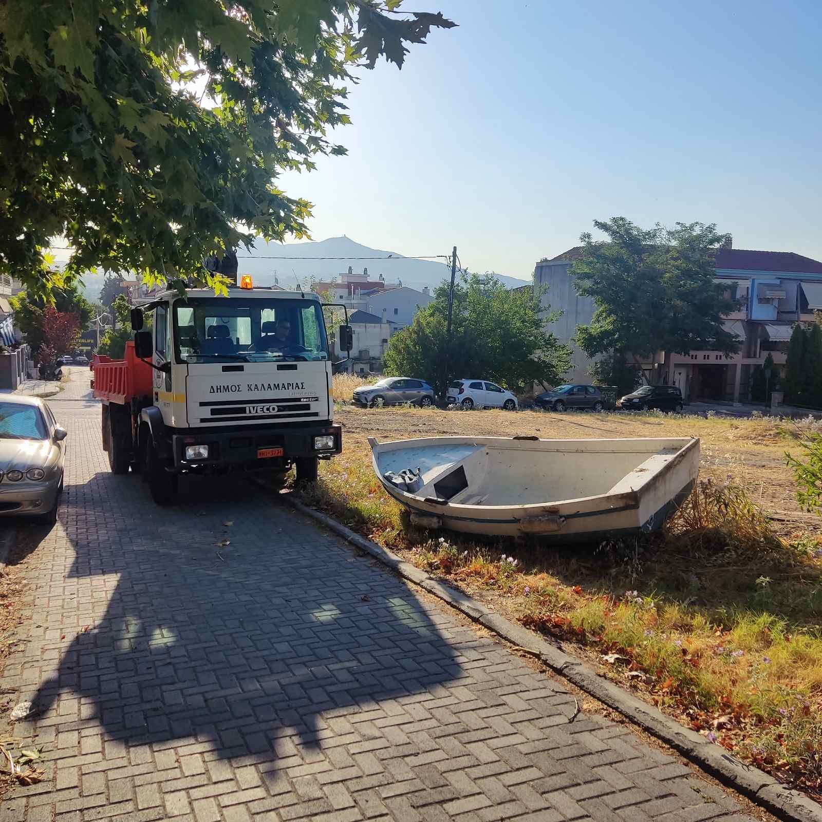 «Με στόχο την ενίσχυση της δημόσιας ασφάλειας και την προστασία του περιβάλλοντος, ο Δήμος Καλαμαριάς πραγματοποίησε επιχείρηση καθαρισμού και απομάκρυνσης παλιών εγκαταλελειμμένων σκαφών, τα οποία βρίσκονταν επί 18 και πλέον χρόνια σε ιδιωτικό οικόπεδο στη συμβολή των οδών Κούλας Ελευθεριάδου και Αποστόλου Ωρολογά.
