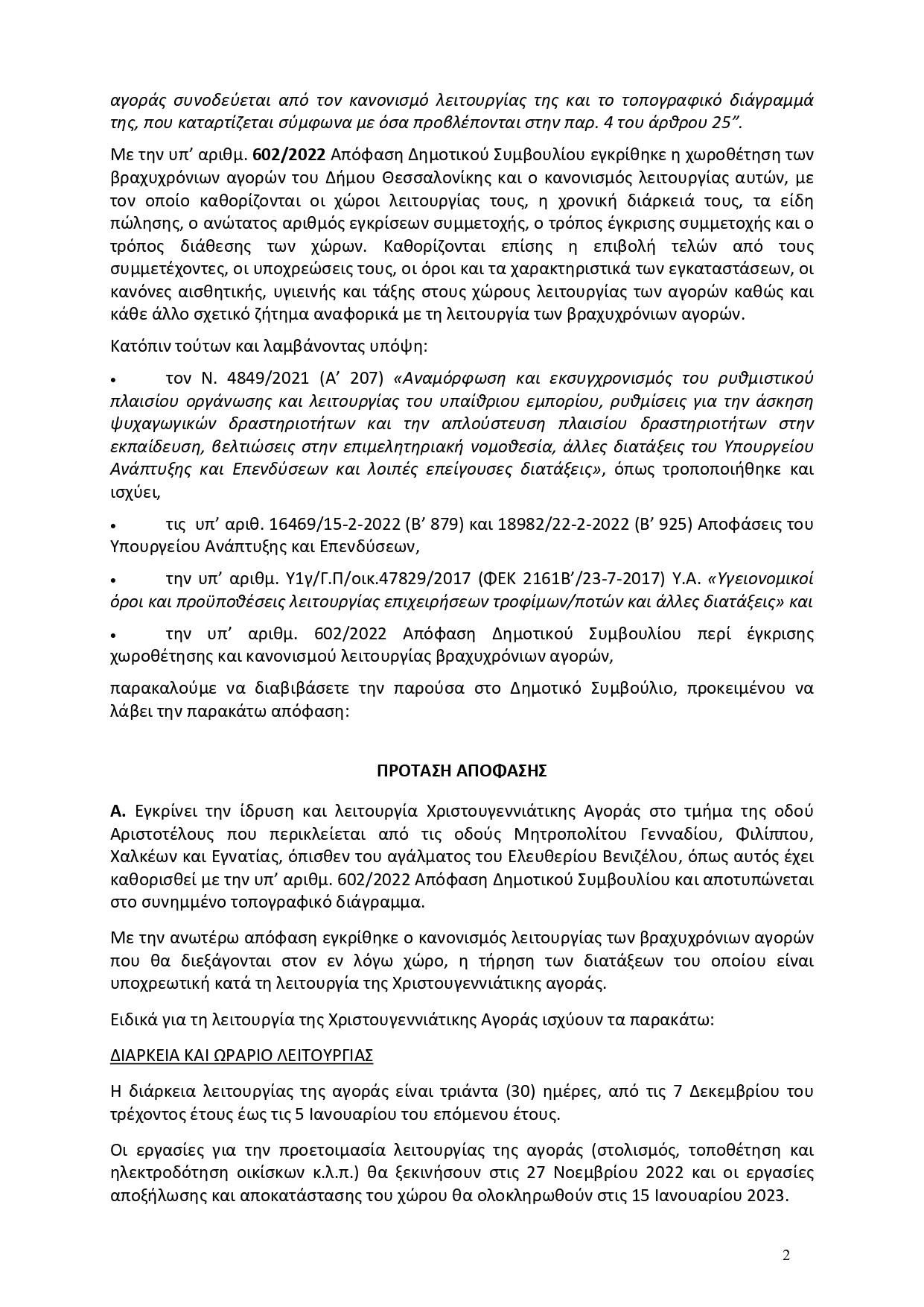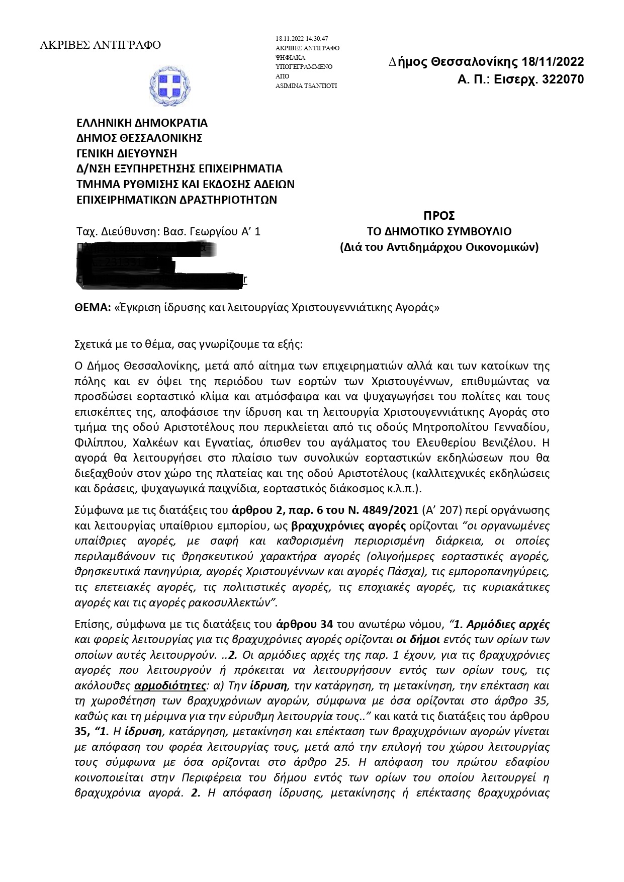 Δείτε τι αναφέρει η εισήγηση της αρμόδιας υπηρεσίας του δήμου Θεσσαλονίκης, που εγκρίθηκε από το δημοτικό συμβούλιο κατά πλειοψηφία για την ίδρυση και λειτουργία της Χριστουγεννιάτικης Αγοράς: