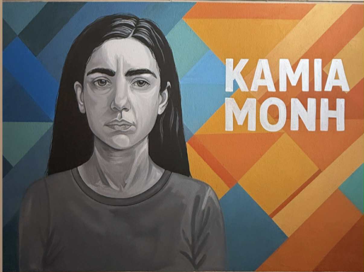 Με το ισχυρό σύνθημα «Καμία μόνη», η τοιχογραφία υπενθυμίζει πως δεν σιωπούμε μπροστά στη βία και στηρίζουμε κάθε γυναίκα που τη βιώνει.