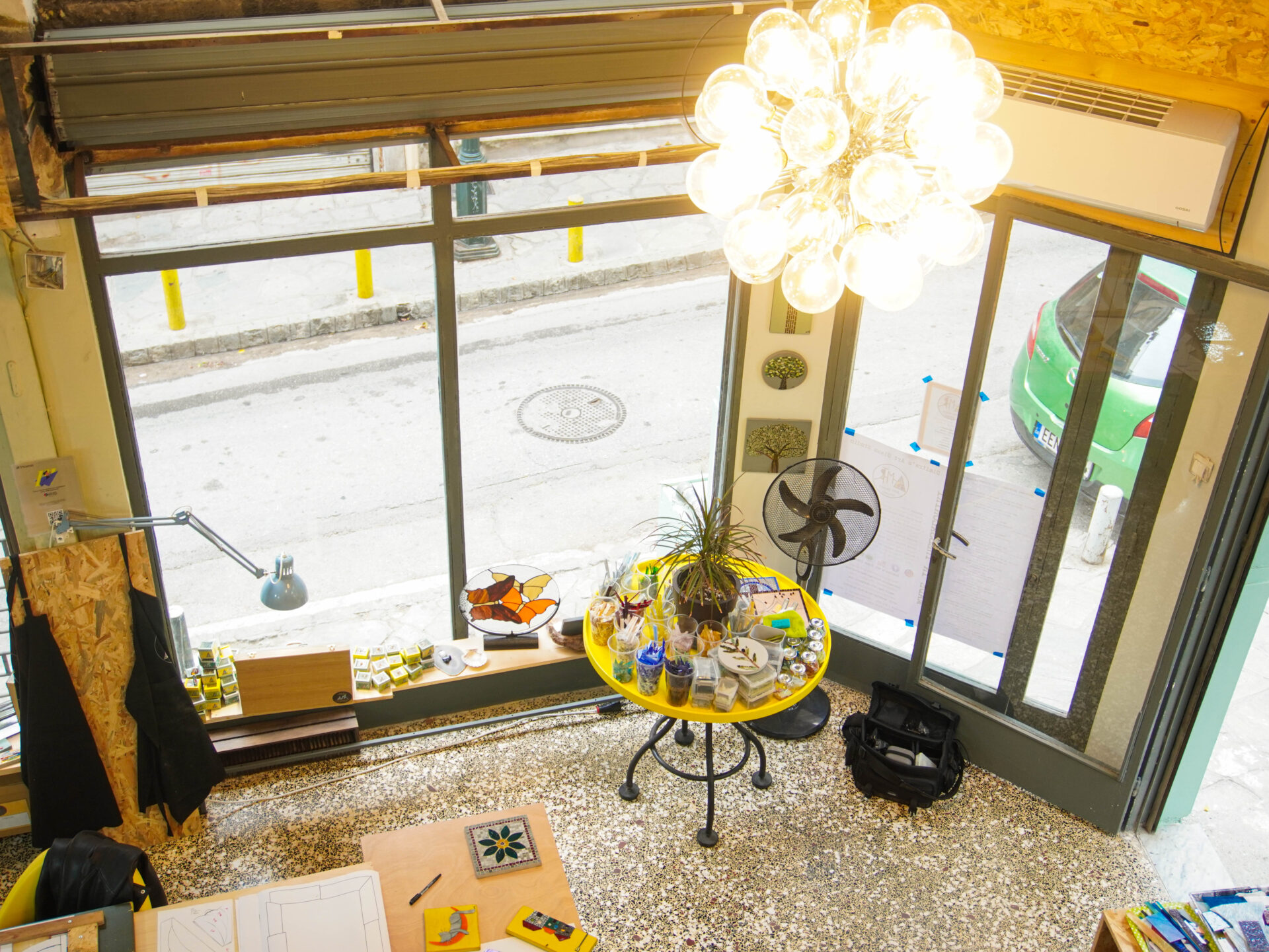 Σε ένα στενό, ανεβαίνοντας τον πλακόστρωτο δρόμο της Άνω Πόλης, θα συναντήσεις ένα γωνιακό μαγαζάκι γεμάτο με τα πιο εντυπωσιακά μωσαϊκά και βιτρώ στη Θεσσαλονίκη.