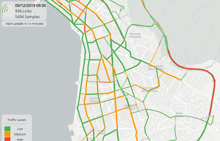 Η κίνηση των οχημάτων διεξάγεται με μεγάλη δυσκολία. Σύμφωνα με τα στοιχεία από τον χάρτη του trafficthess.imet υπάρχει μεγάλο μποτιλιάρισμα στο ρεύμα προς δυτικά (στιγμιότυπο χάρτη αυτή την ώρα):