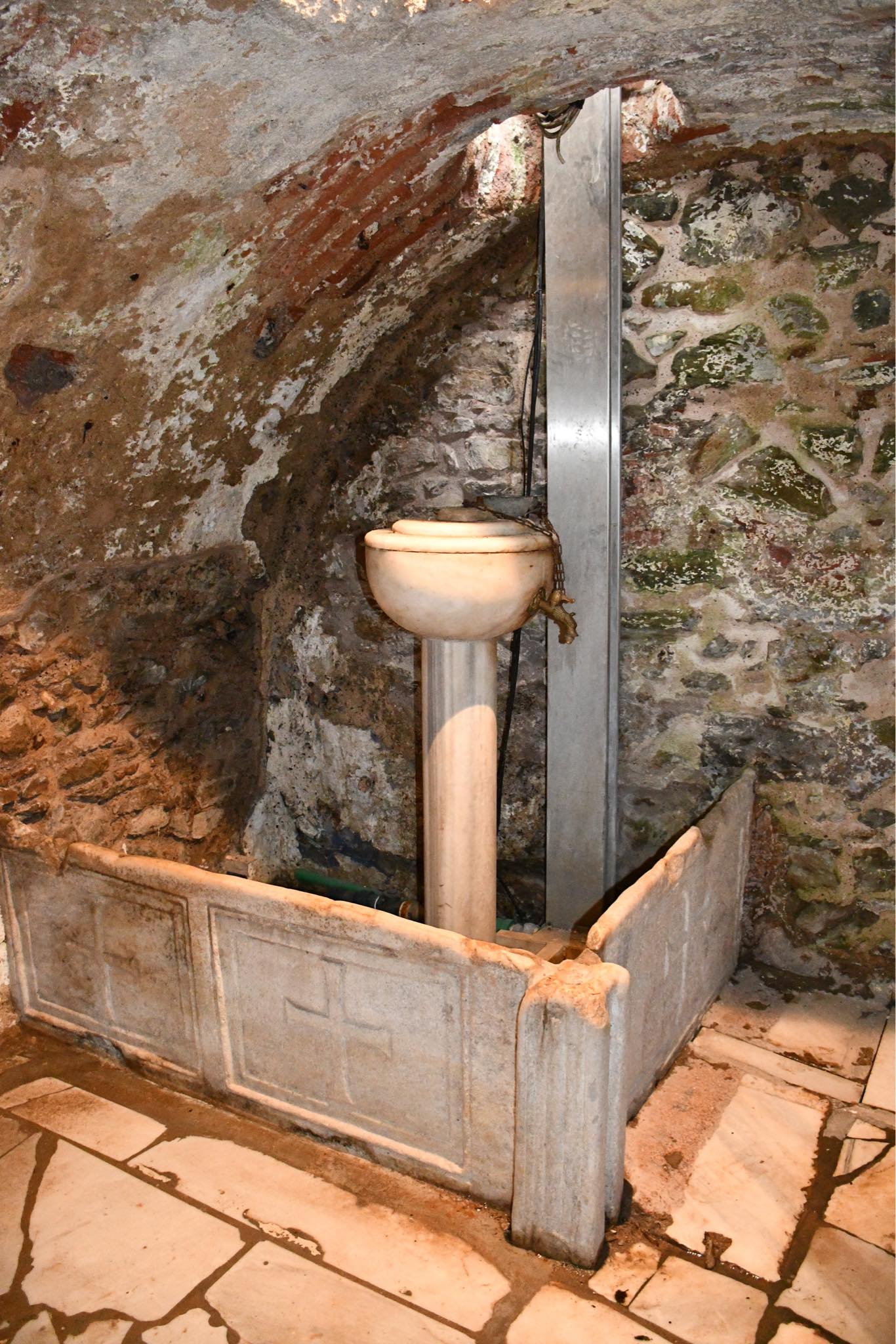 Για να μπορέσει κανείς να περάσει στους χώρους όπου βρίσκεται το αγίασμα, θα πρέπει να σκύψει αρκετά.
