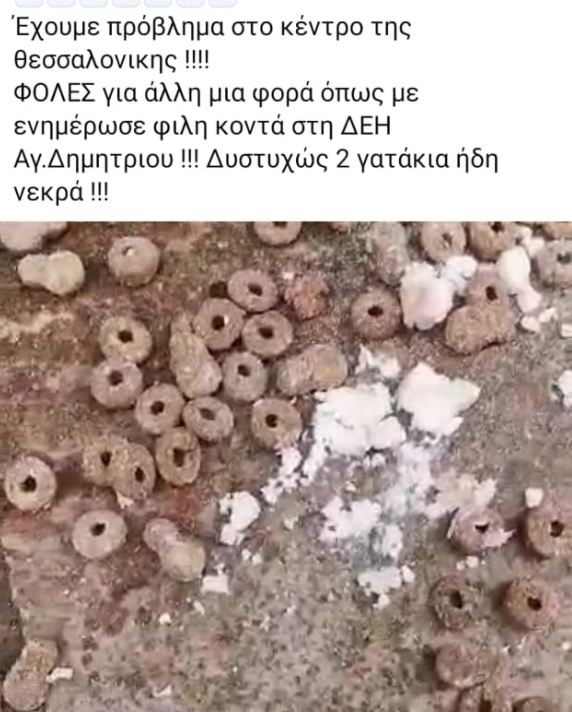 Οι φιλοζωϊκές οργανώσεις έχουν ήδη δεχτεί καταγγελίες για τις περιοχές Ολύμπου, Αγίου Δημητρίου, Ρωμαϊκή Αγορά, Ίωνος Δραγούμη αλλά και ανατολικά στο Ντεπώ, το Βυζάντιο και την Καλαμαριά.