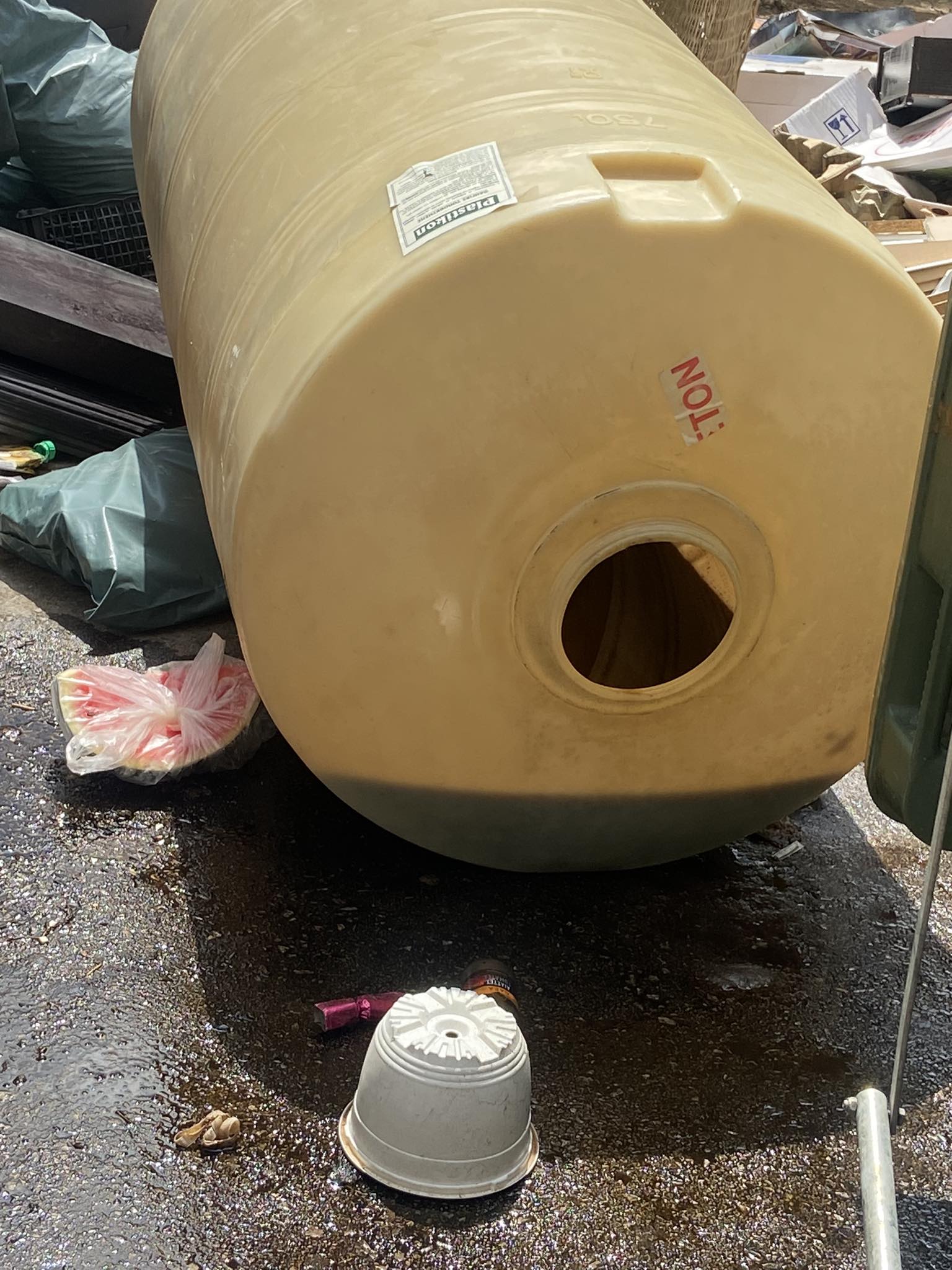 Χωρίς τη δική μας συνεισφορά, η πόλη δεν θα αγγίξει ποτέ τα επιθυμητά επίπεδα καθαριότητας, ειδικά όταν σε κοινούς κάδους απορριμμάτων εναποθέτουμε οικοδομικά υλικά και τώρα δεξαμενές πετρελαίου, όπως θα δείτε και στις φωτογραφίες!