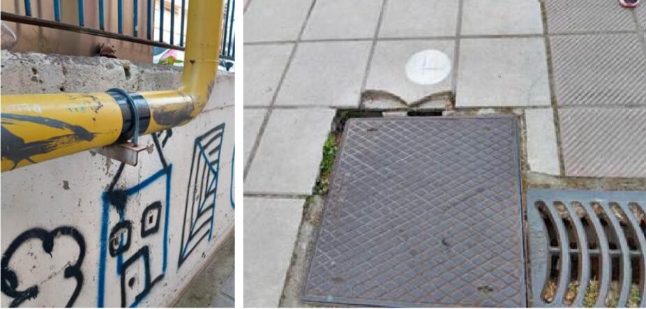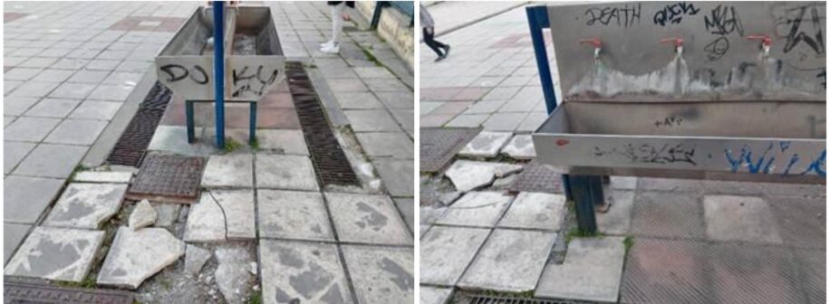 Σπασμένα μάρμαρα, πέτρες, ξεριζωμένα δέντρα, σπασμένα πλακίδια πεζοδρομίου, σκουριασμένα σίδερα, βουλωμένες βρύσες, λίμνες με βρώμικα νερά από τις βουλωμένες αποχετεύσεις, ορίζουν ένα καθημερινό ναρκοπέδιο για τα παιδιά μας που προσπαθούν να παίξουν στις αυλές και να μην πέσουν στις δεκάδες παγίδες που η αδιαφορία του Δήμου έχει στήσει για αυτά.