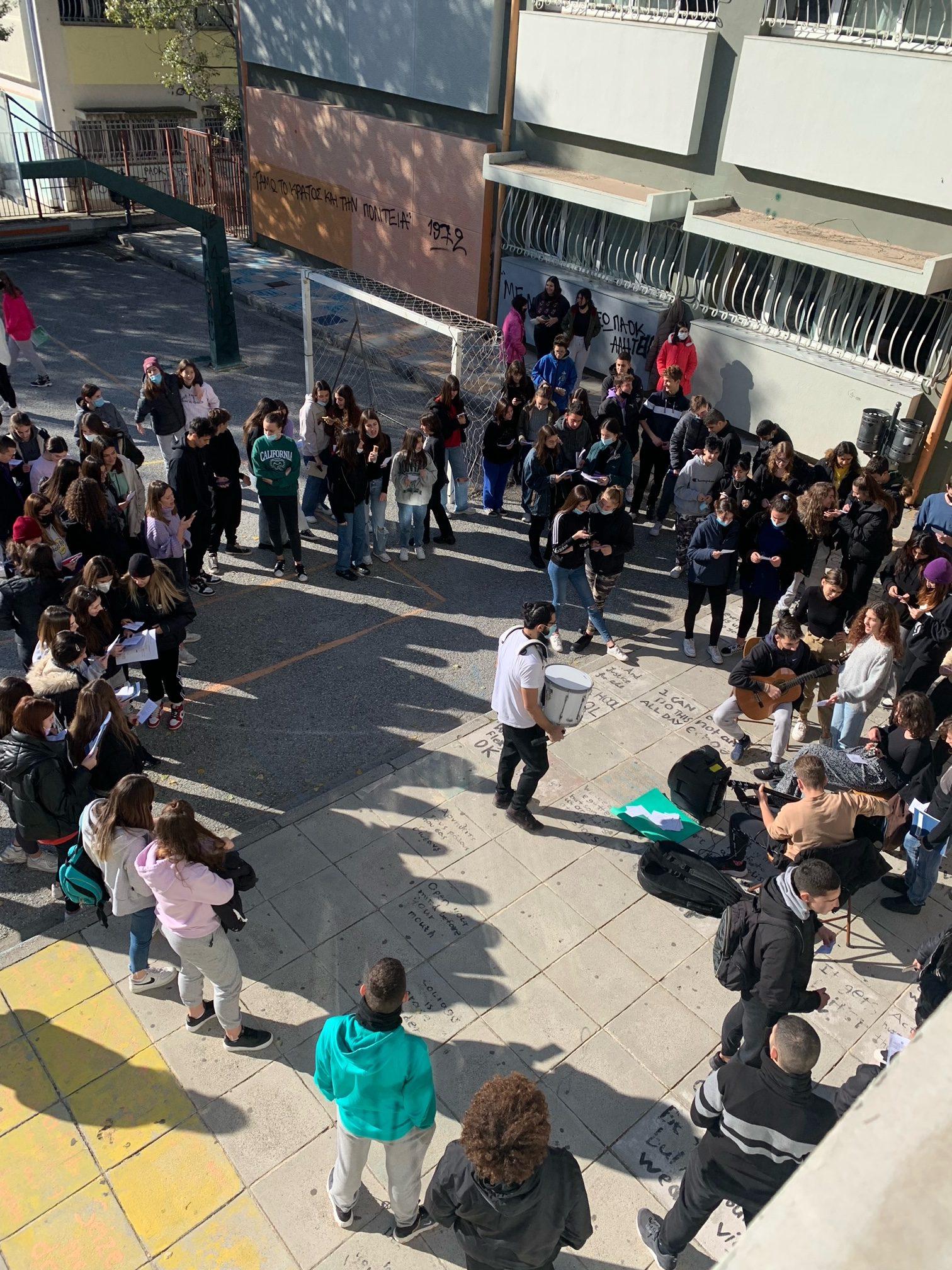 Στην συνέχεια οι μαθητές ένωσαν τις φωνές τους και τραγούδησαν ένα τραγούδι με τίτλο «Δεν περισσεύει κανείς», που είναι και το σύνθημα του Σωματείου.