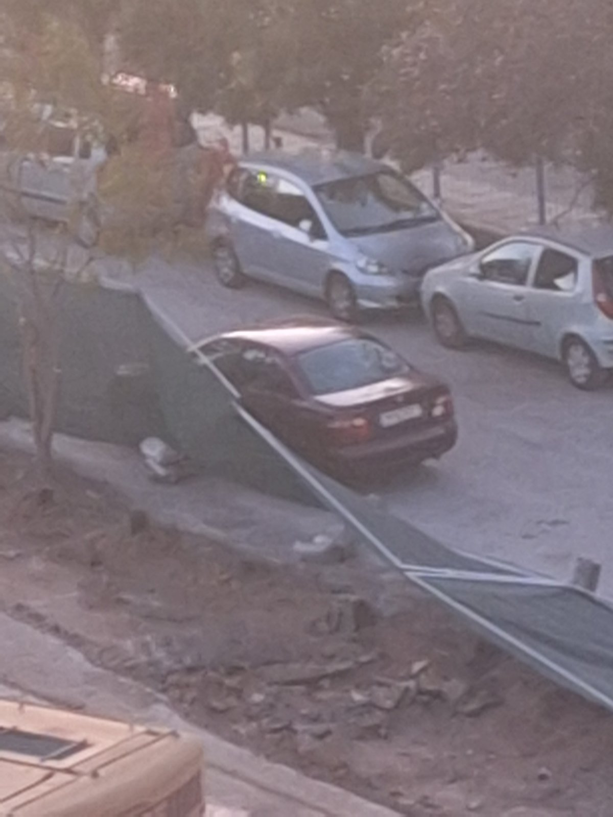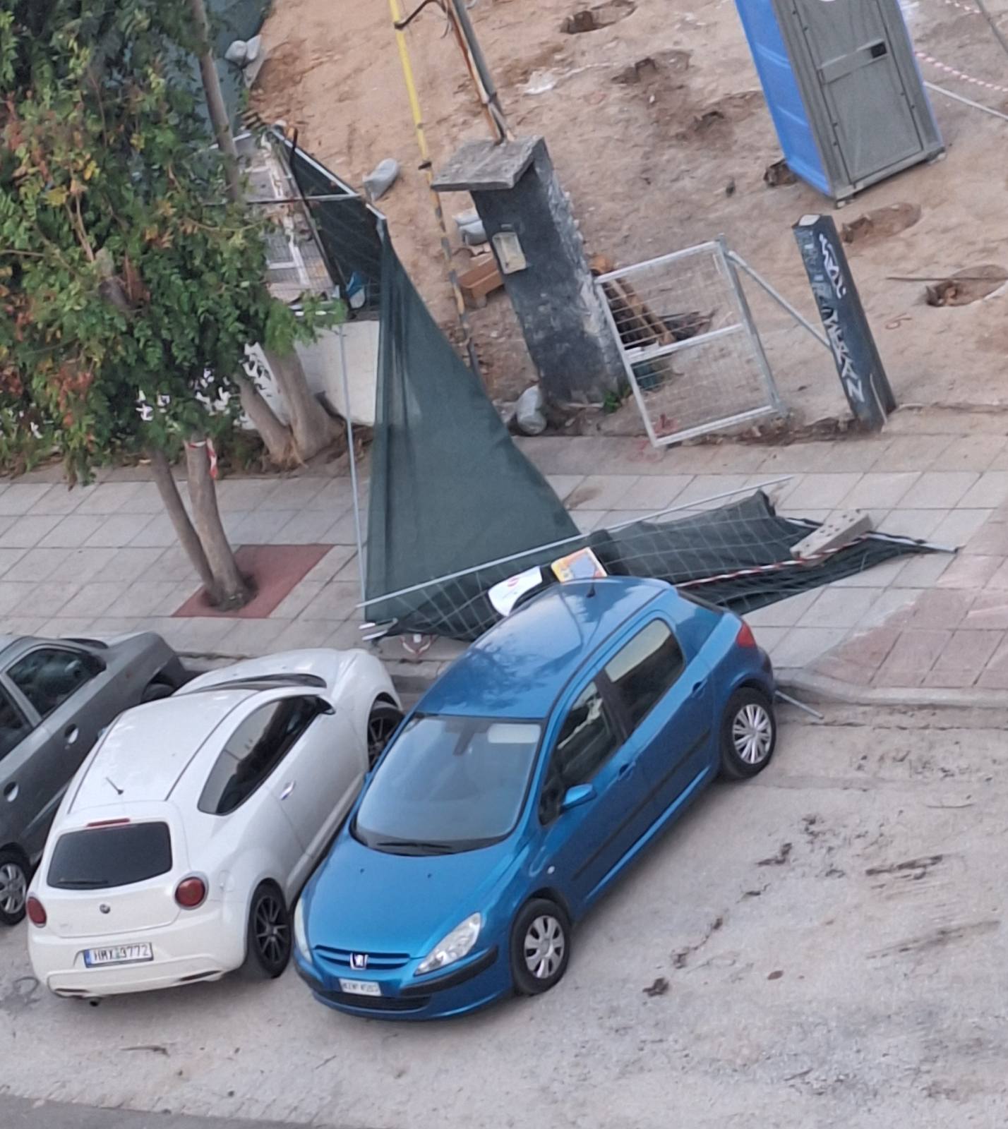Έπεσε η περίφραξη του εργοταξίου για την 9όροφη πολυκατοικία επί των οδών Καρακάση και Ζεμπελίου, λόγω της χθεσινοβραδινής κακοκαιρίας, καταλήγοντας πάνω σε σταθμευμένα οχήματα, καταγγέλλουν οι κάτοικοι Γαλαξία.