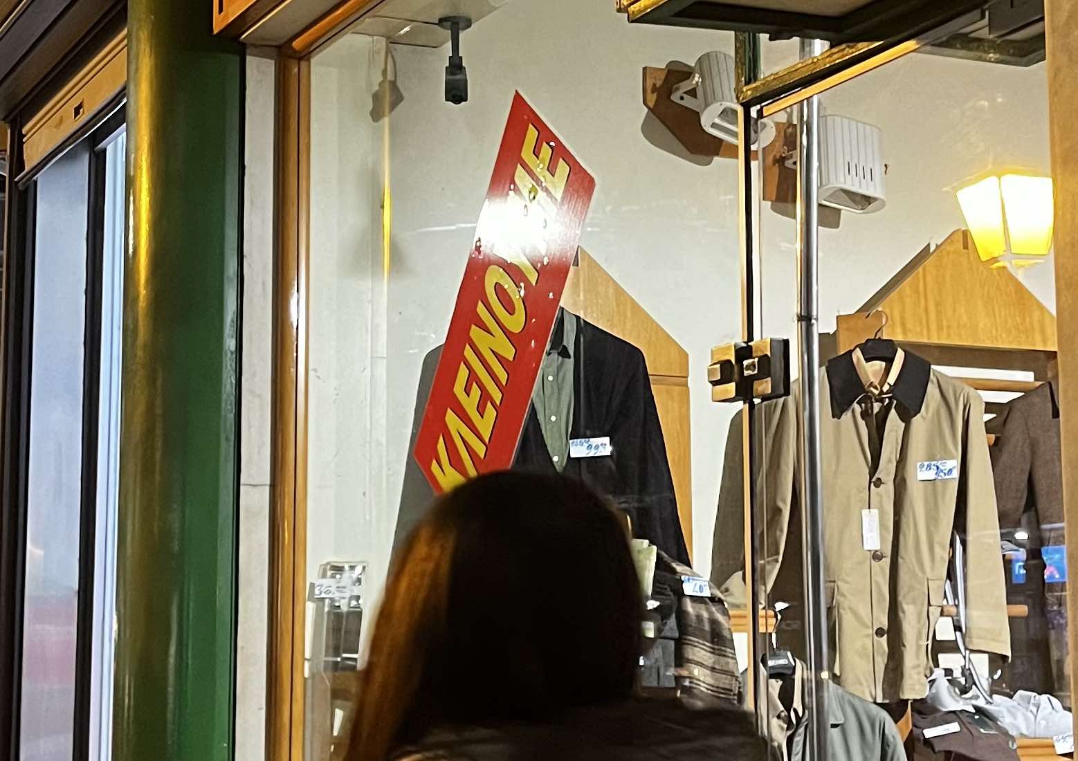 Στη τζαμαρία του μικρού καταστήματος με ανδρικά είδη στην Αλ. Σβώλου, είναι κολλημένο ένα μεγάλο «ΚΛΕΙΝΟΥΜΕ». Μέσα, οι γραβάτες, τα κασκόλ και πουκάμισα πωλούνται σε τιμές φθηνότερες από τα μισά της αρχικής τους.