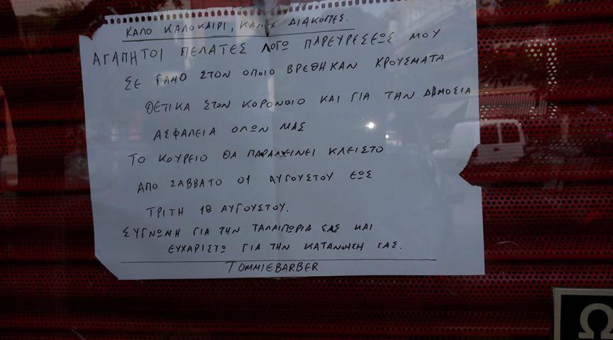 Ο φόβος φυλάει τα έρμα. Ο περίφημος γάμος των Αμπελοκήπων λειτούργησε όπως φαίνεται αποτρεπτικά για την συνέχιση της ομαλής ζωής στη γειτονιά. Η εικόνα ενός κλειστού κουρείου τα λέει όλα…