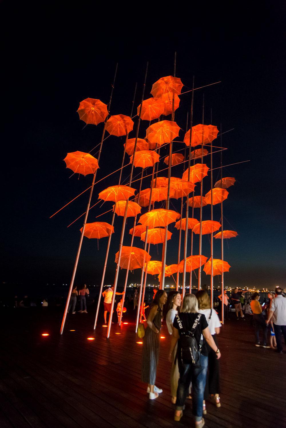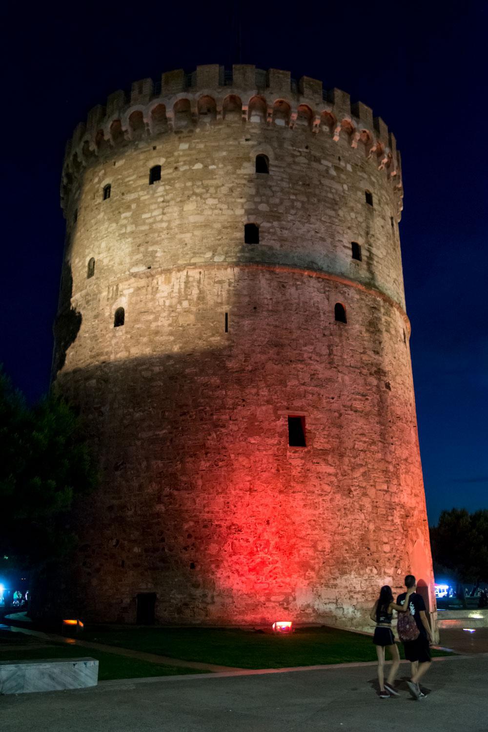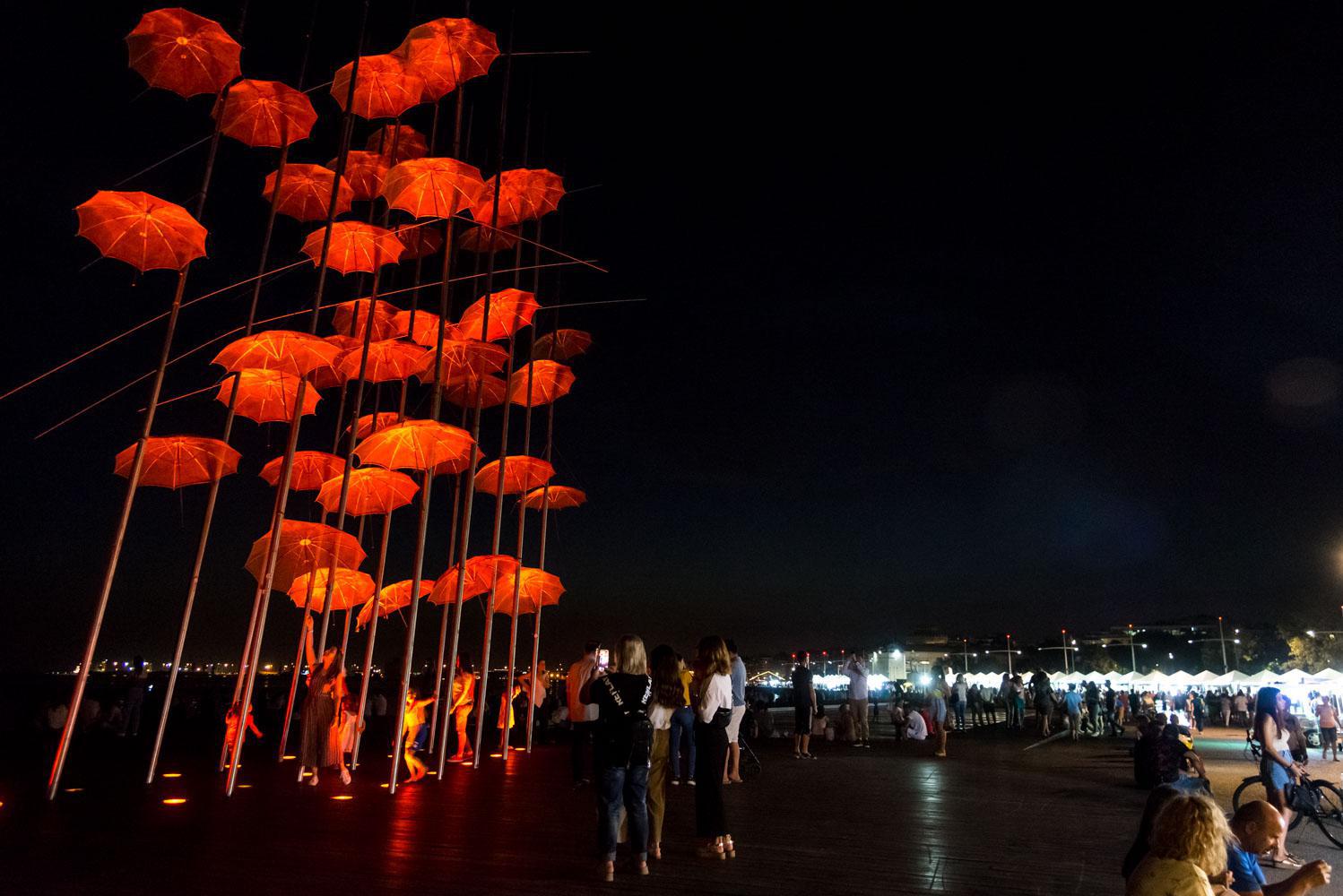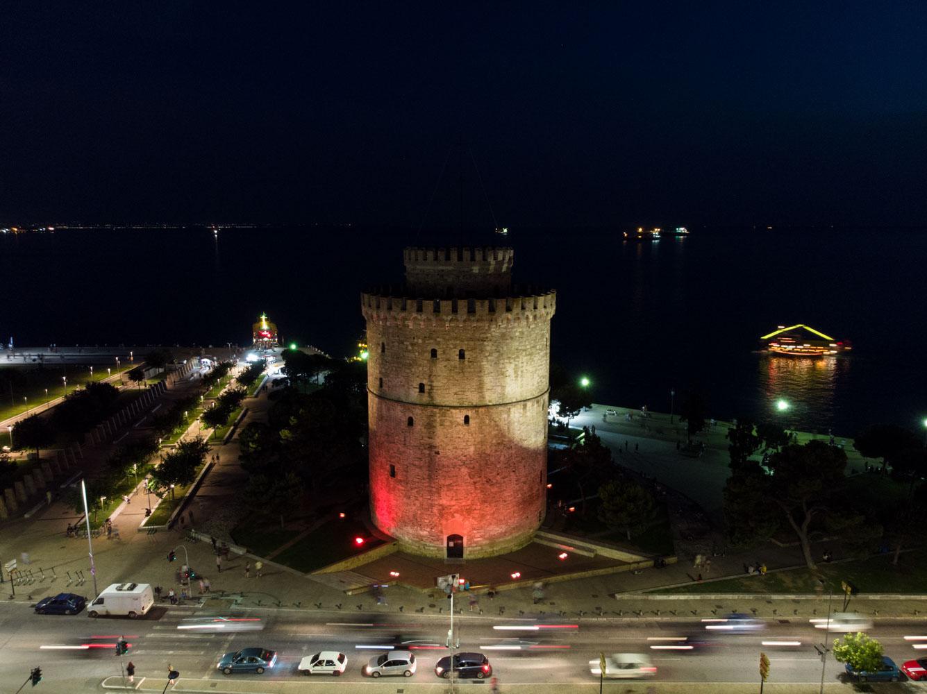 Αφιερωμένη στην ιδέα της αιμοδοσίας η αποψινή φωταγώγηση του Λευκού Πύργο και των Ομπρελών του Ζογγολόπουλου στην παραλία.