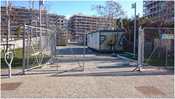Ανάμεσα στον Κήπο του Απογευματινού Ήλιου και το Μακεδονία Παλλάς υπάρχει ακόμα περίφραξη με κοντέινερ του εργοτάξιου που δυσκολεύει την κίνηση των πολιτών, είναι συνήθως ανοιχτή από την πλευρά του πλακόστρωτου και κλειστή από την πλευρά της Μεγ. Αλεξάνδρου.