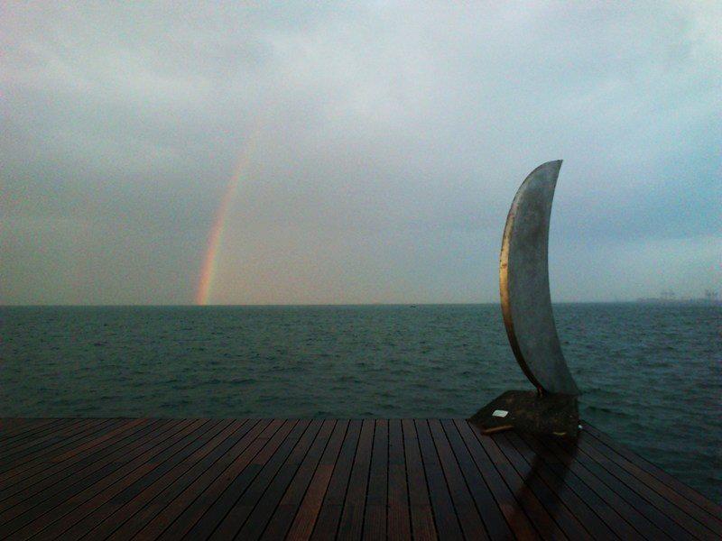 Δύο είναι τα σήμματα κατατεθέντα της Νέας Παραλίας. Οι ομπρέλες του Ζογγολόπουλου και το Φεγγάρι στην Ακτή του Παύλου Βασιλειάδη. Τα φεγγάρια του στόλισαν τον Θερμαϊκό κόλπο όταν η Θεσσαλονίκη ήταν Πολιτιστική Πρωτεύουσα της Ευρώπης, την ακτή της Σάνης στο Sani Festival, του Porto Valitsa, αλλά και τη θάλασσα και στο κοσμοπολίτικο Σεν Τροπέ. Ο Παύλος Βασιλειάδης, ο Θεσσαλονικιός καλλιτέχνης επανήλθε μέσω των Δημητρίων, στον δημόσιο χώρο, το 2010: στόλισε πάρκα με τα μεταλικά λουλούδια του, την ψαραγορά με τους πλανήτες του, το γυμνό μπετόν του νέου δημαρχείου με τους αστερισμούς του και φώτισε την ακτή του Θερμαϊκού με το μισοφέγγαρό του. Η εγκατάσταση «Φεγγάρι στην ακτή» είναι έργο από ανοξείδωτο μέταλλο επιζωγραφισμένο με χρώμιο, ύψους 3,80 μ.. Η φύση- ο απόλυτος καλλιτέχνης- χτες συντρόφεψε το γλυπτό με μια παράλληλη καμπύλη. Αυτή του ουράνιου τόξου.