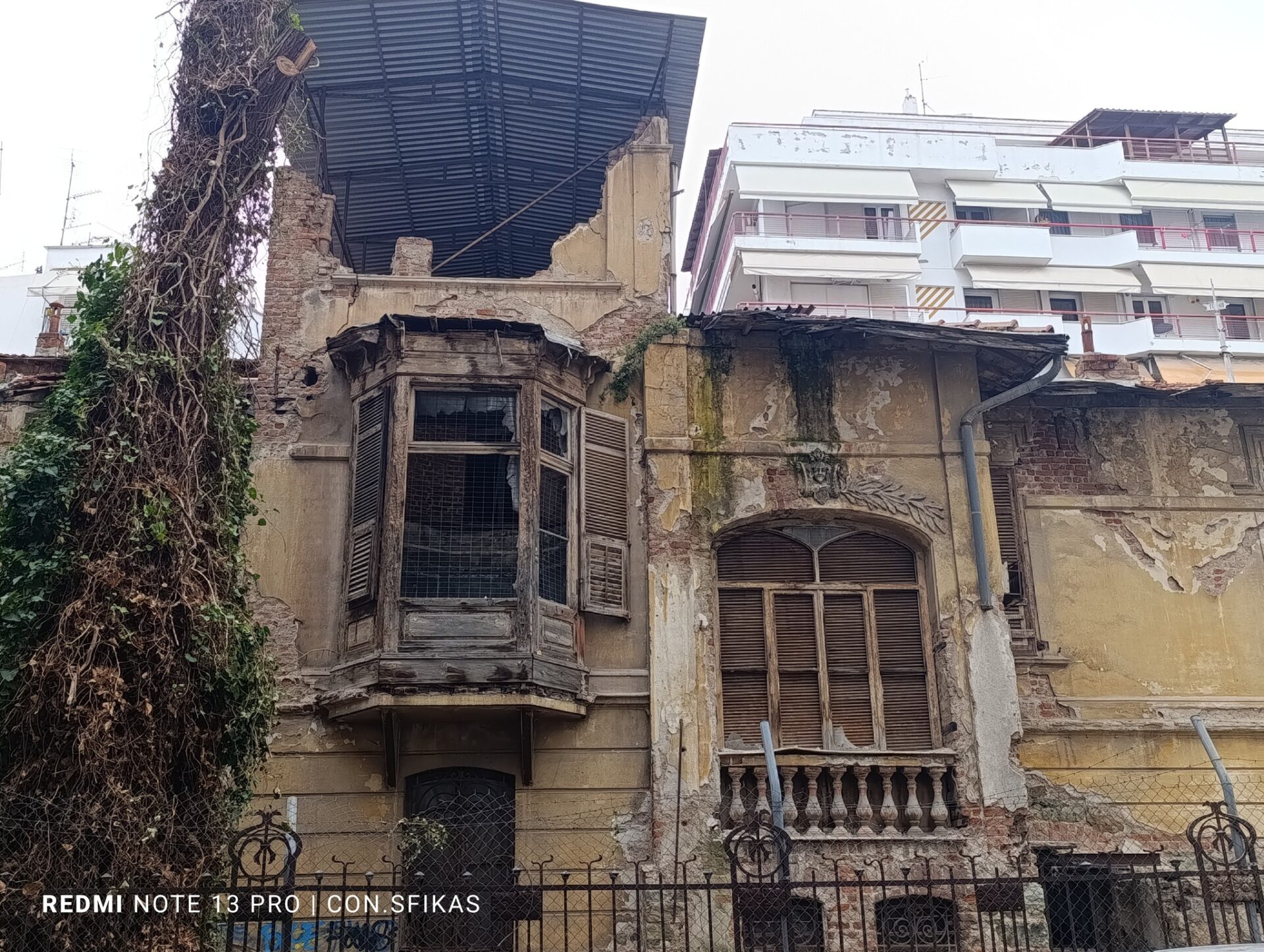 Όπως συμβαίνει με το κτίριο – φάντασμα στον αριθμό 144 της Βασιλίσσης Όλγας, στη συμβολή με την οδό Γραβιάς.