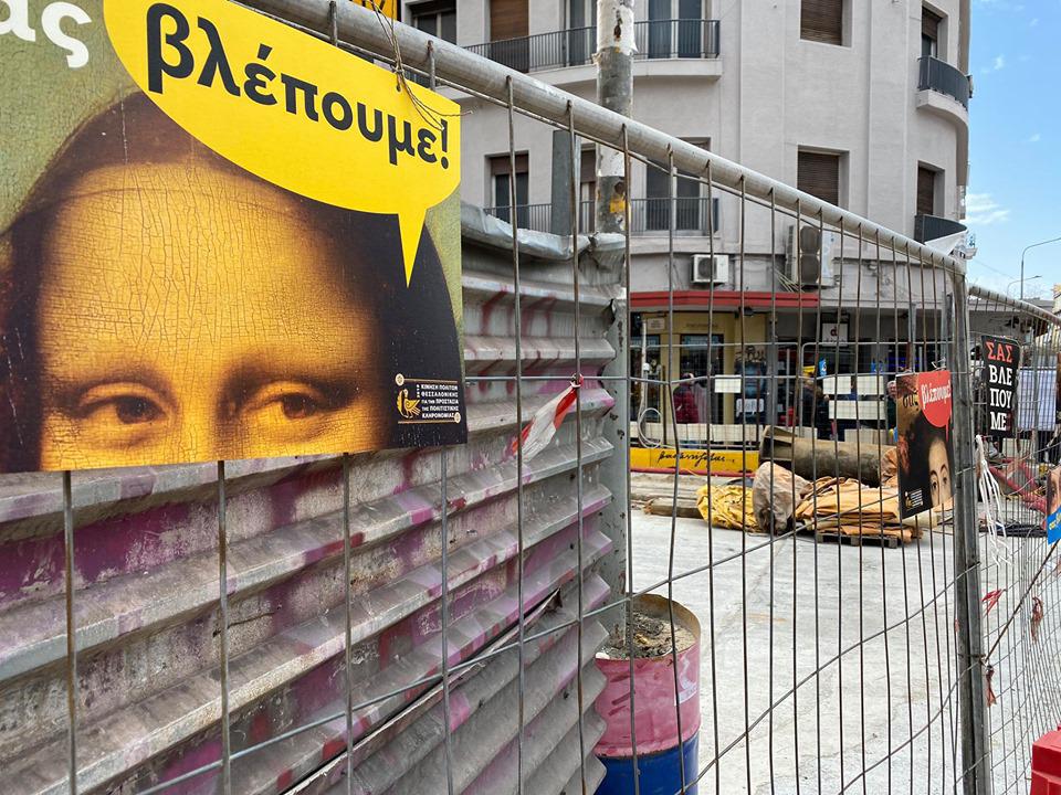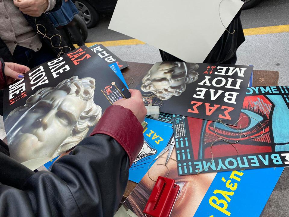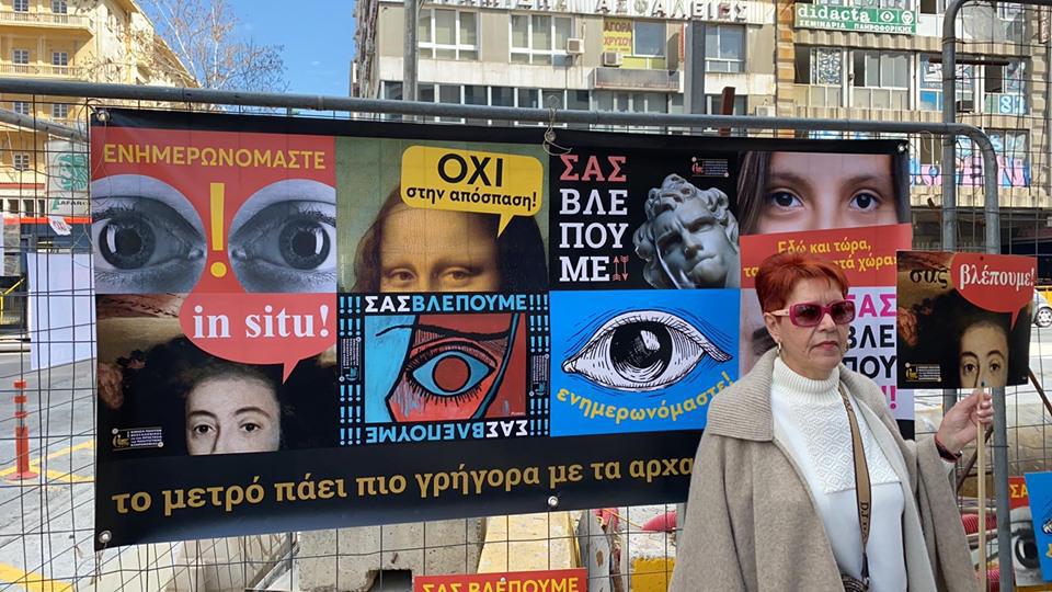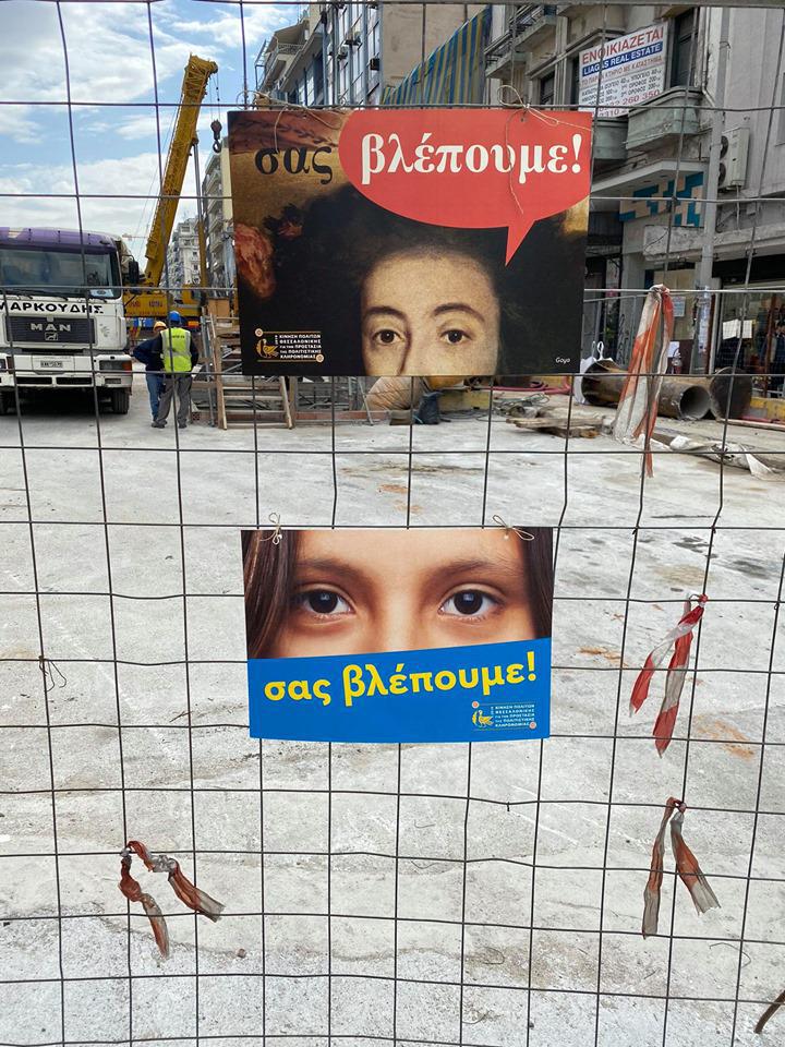 Θέμα της παρέμβασης είναι η δημιουργία στην περίφραξη του Σταθμού Βενιζέλου ενός μεγάλου παζλ από φωτογραφίες και σχέδια από μάτια που συμβολίζουν την παρουσία και την εγρήγορση της Κίνησης στο θέμα των αρχαίων.