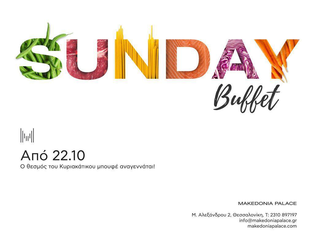 *Από 22 Οκτωβρίου και κάθε Κυριακή. Ώρα: 13:00 – 16:00. Τιμή : € 42/ άτομο. Εστιατόριο Salonica, Makedonia Palace Hotel. Για περισσότερες πληροφορίες & κρατήσεις μπορείτε να επικοινωνείτε στο +30 2310 897197.