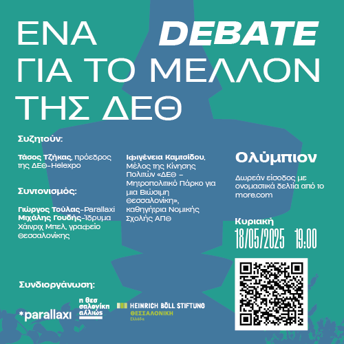 Γι’ αυτόν το λόγο, η Parallaxi και το Ίδρυμα Χάινριχ Μπελ – Γραφείο Θεσσαλονίκης οργανώνουν μια δημόσια συζήτηση, επιχειρώντας να καλύψουν το κενό διαλόγου και φέρνοντας για πρώτη φορά στο ίδιο τραπέζι τις πλευρές που εκπροσωπούν τις διαφορετικές προτάσεις αξιοποίησης της έκτασης.