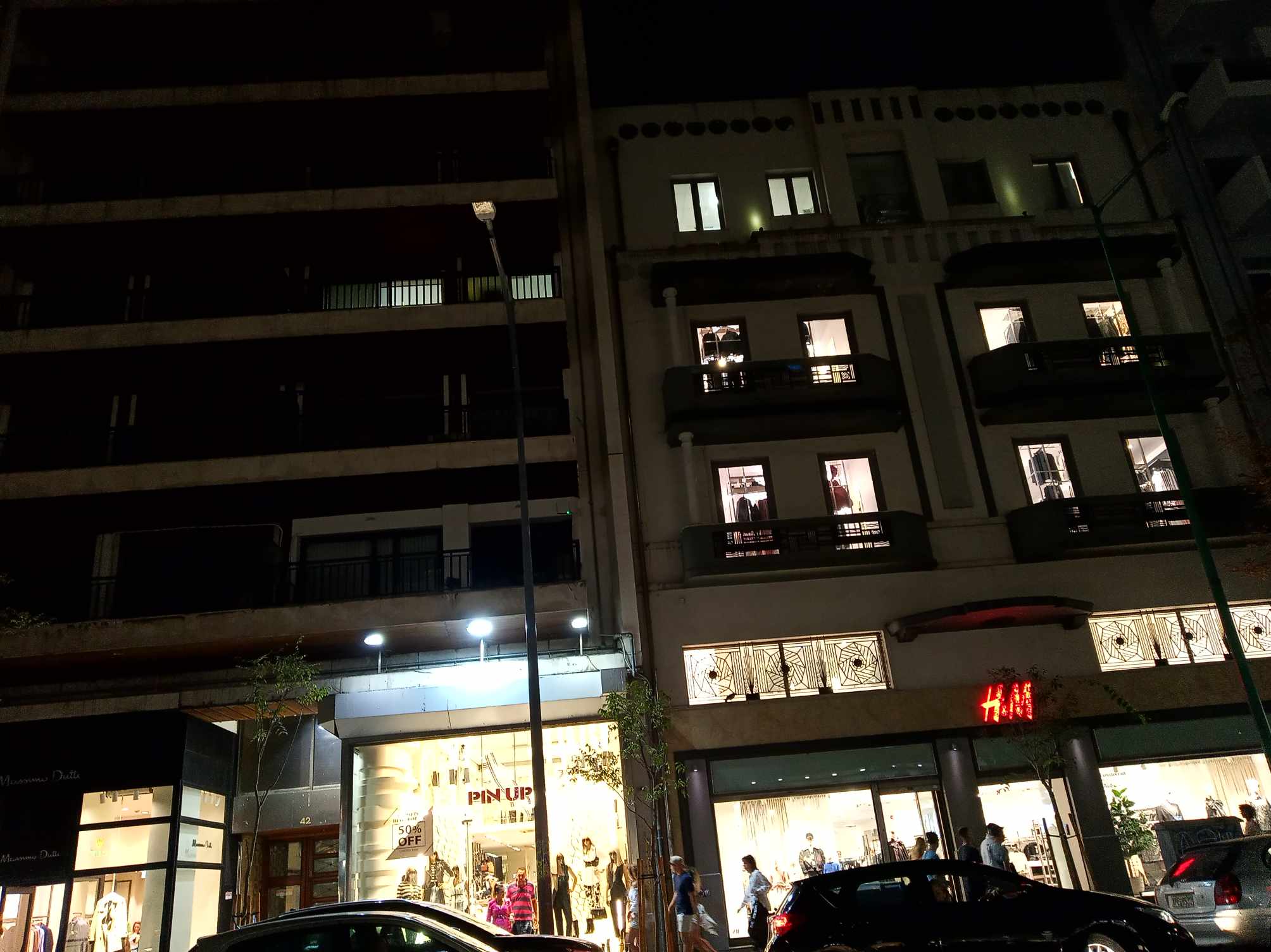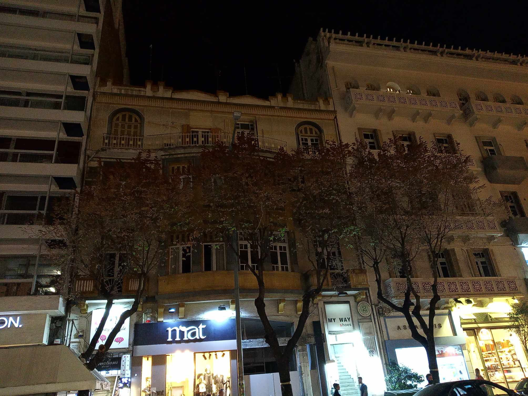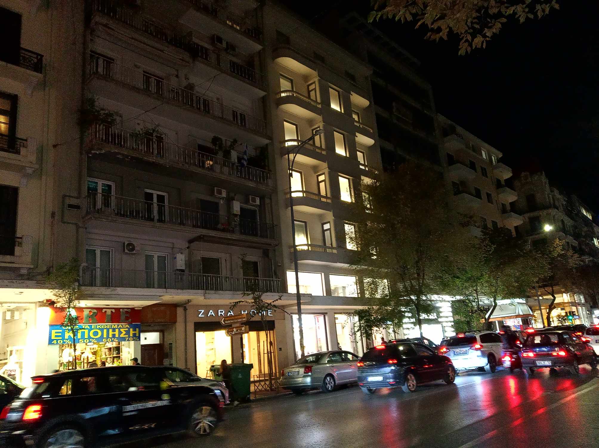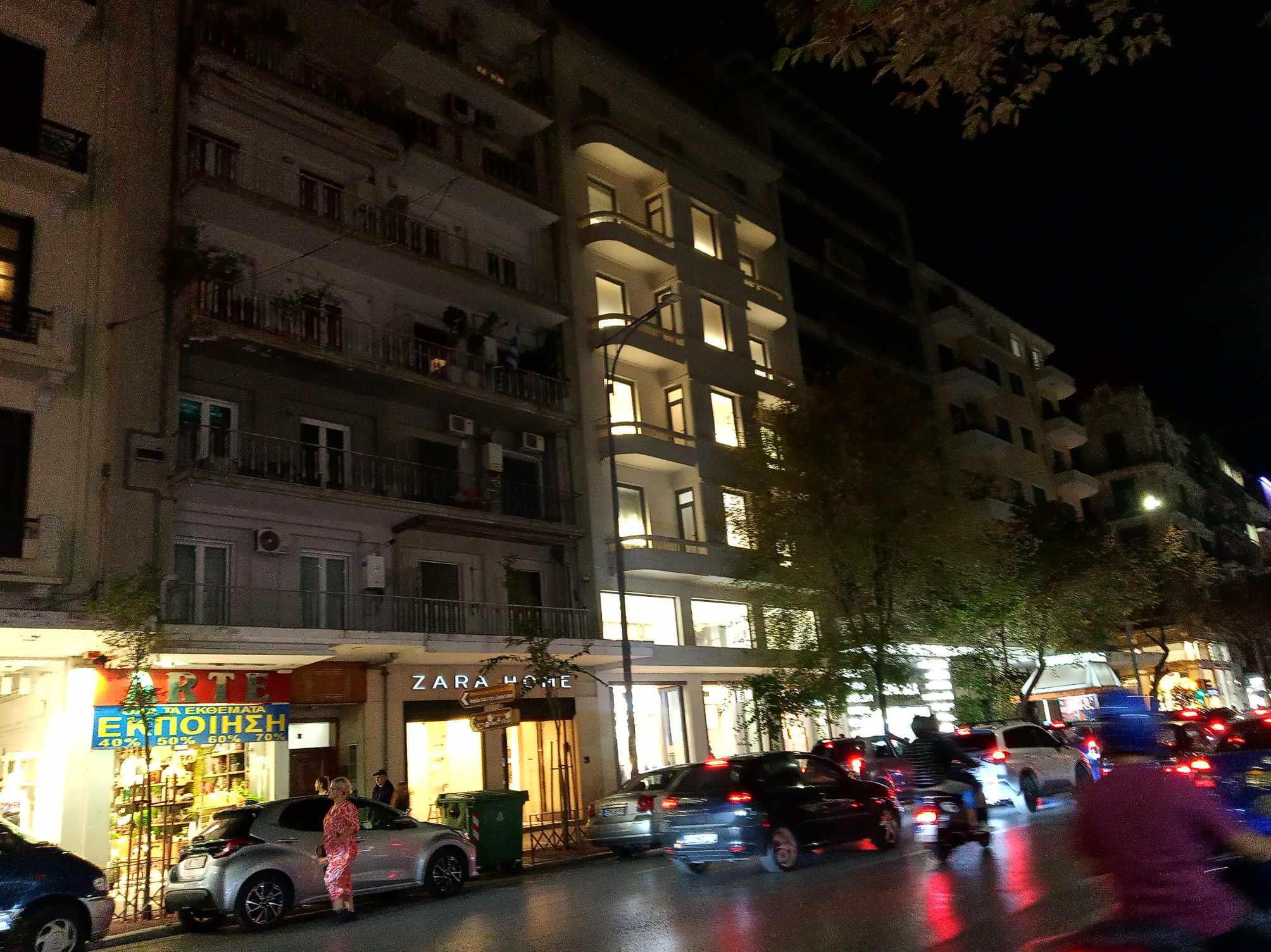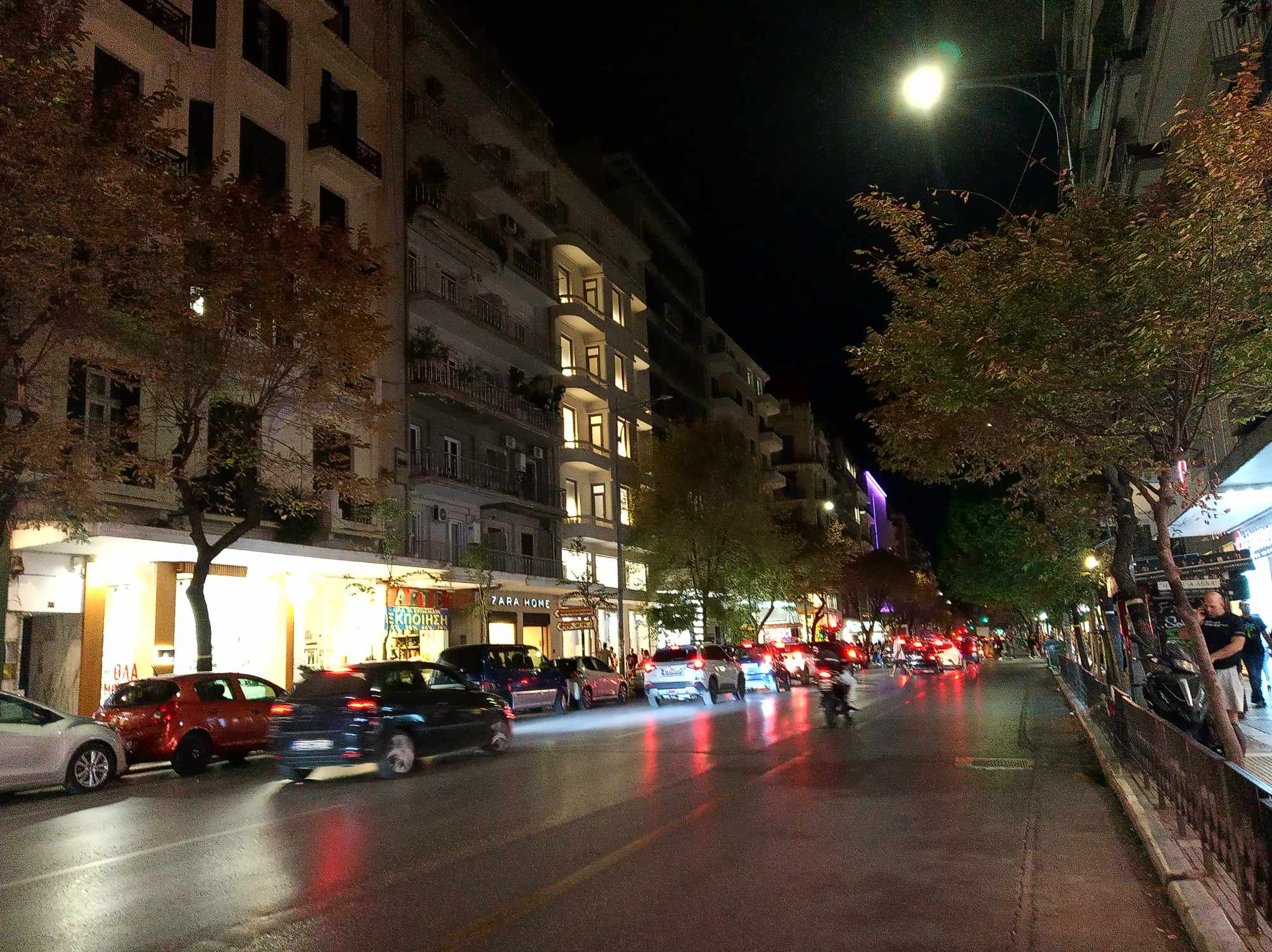 Ακόμα και στον πιο κεντρικό δρόμο της πόλης, στην Τσιμισκή, υπάρχουν σκοτεινά σημεία, καθώς οι λάμπες στις κολώνες φωτισμού είναι σβηστές.
