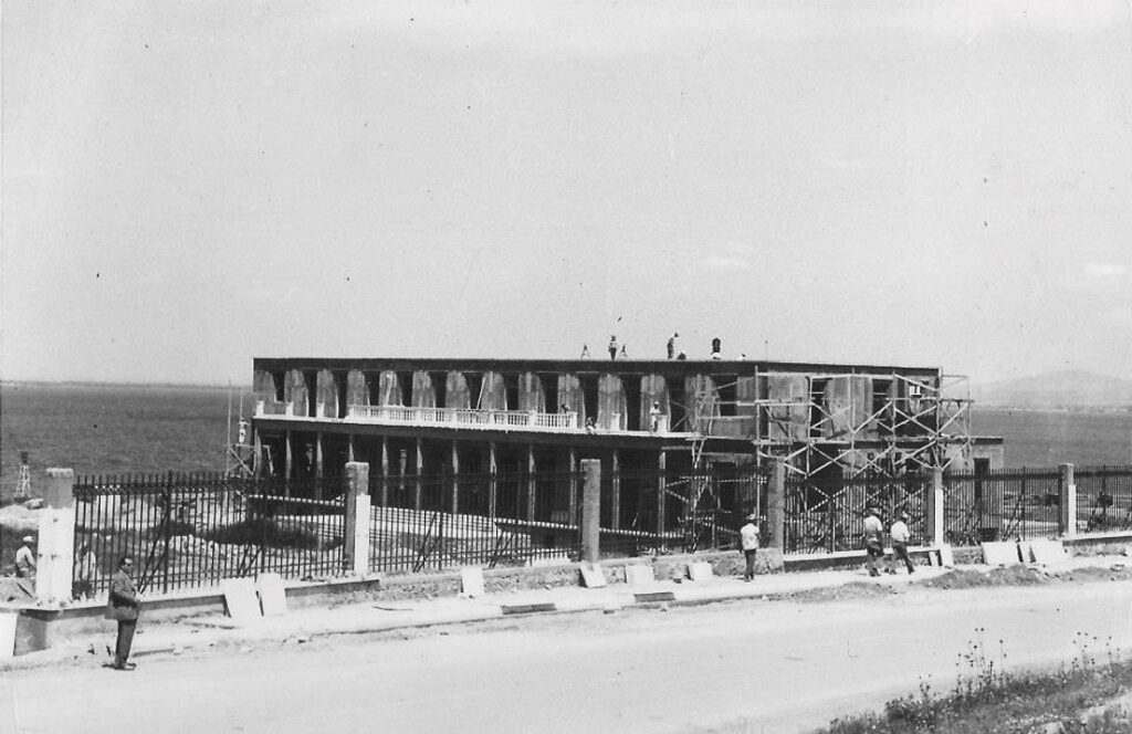Το παλατάκι άρχισε να κατασκευάζεται στα τέλη της δεκαετίας του ’50 προοριζόμενο πιθανότατα να γίνει Κυβερνείο σε έκταση που παραχωρήθηκε το 1959 από το υπουργείο Συγκοινωνιών και Έργων. Ο νεοκλασικός ρυθμός προεκρίθη γιατί “σκοπός του μεγάρου είναι η επιβλητική προβολή του κράτους” σύμφωνα με το βιβλίο του Βασίλη Κολώνα. Για τον ίδιο λόγο άλλωστε προστέθηκε το τριγωνικό αέτωμα στην καθ’ ύψος επέκταση του διοικητηρίου της πόλης, έδρα μεταπολεμικά του Υπουργείου Βορείου Ελλάδος.
