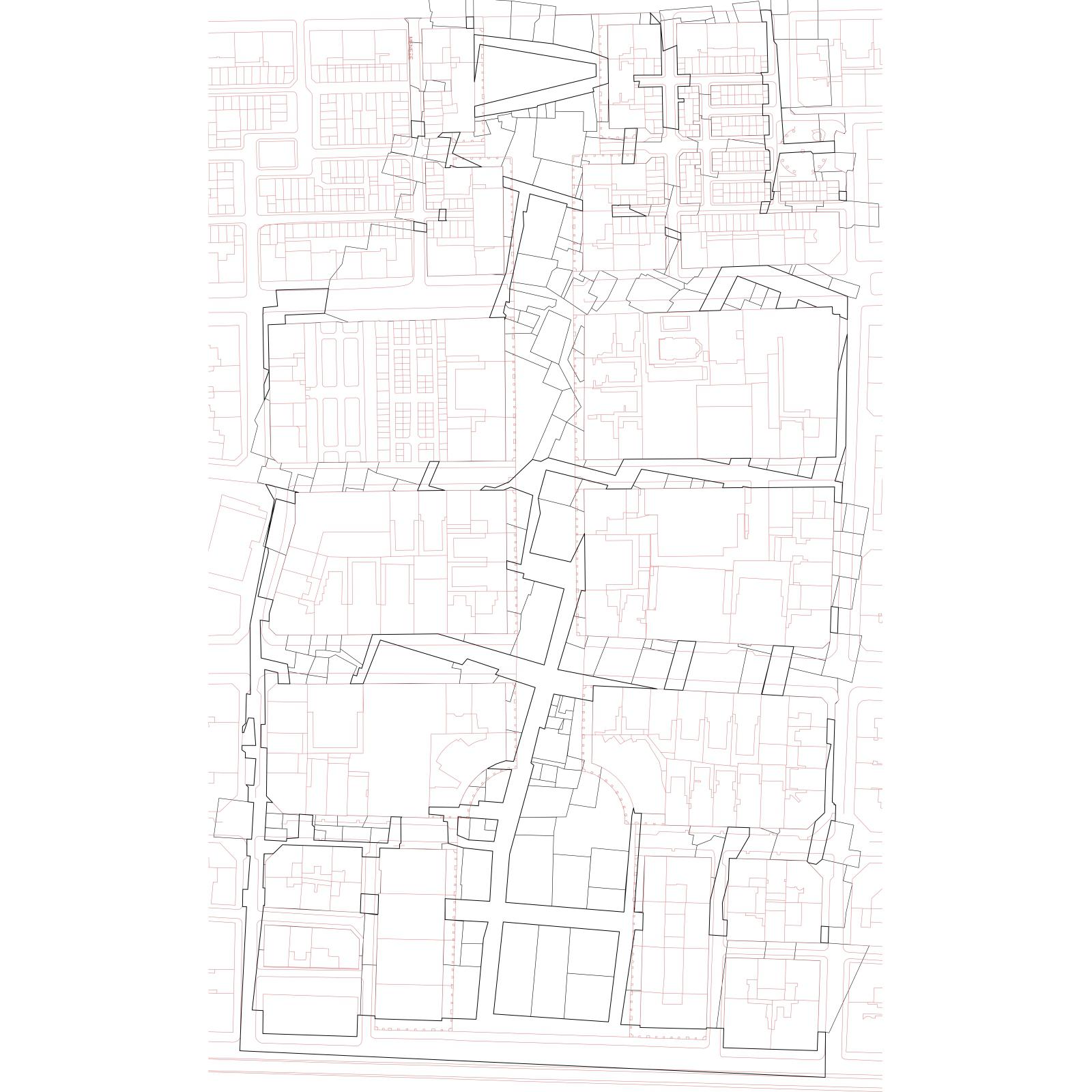 Τα συμβάντα / Το μέσα-έξω Μέσα στο χυτό δάπεδο που ορίζει τον άξονα, η πρόταση χωροθετεί μία σειρά από ‘συμβάντα’. Το συνεχές πεδίο της επιφάνειας της Αριστοτέλους και του ίχνους του παλιού ιστού της πόλης διαφοροποιείται από ιδιαίτερα δάπεδα που δημιουργούν στάσεις και το υπόβαθρο για εναλλακτικές, τοπικές δραστηριότητες. Τα συμβάντα αυτά ορίζουν νησίδες μέσα στο πεδίο του ομοιογενούς χώρου. Το σχήμα τους προκύπτει από μία αφαιρετική αναφορά στα σχήματα των ακάλυπτων των τετραγώνων που βρίσκονται γύρω από την Αριστοτέλους. Σε συμβολικό επίπεδο αποκαλύπτει για δεύτερη φορά αυτό που είναι κρυφό: αν η πρώτη σχεδιαστική κίνηση έφερε στην επιφάνεια το κρυμμένο ίχνος της παλιάς πόλης, η δεύτερη κάνει φανερό τον ‘ιδιωτικό’, πίσω χώρο της πόλης. Σε ουσιαστικό επίπεδο φιλοδοξεί να πετύχει κάτι αντίστοιχο: να δημιουργήσει στάσεις, χώρους πιο προσωπικούς τους οποίους οι κάτοικοι μπορούν να οικειοποιηθούν έτσι ώστε να βρεθούν μεταξύ τους και να μπορέσουν τελικά να μεταφέρουν ίσως ένα μέρος της ζωής τους στον δημόσιο χώρο. Οι νησίδες αυτές λοιπόν είναι χώροι συνάντησης και επαφής.