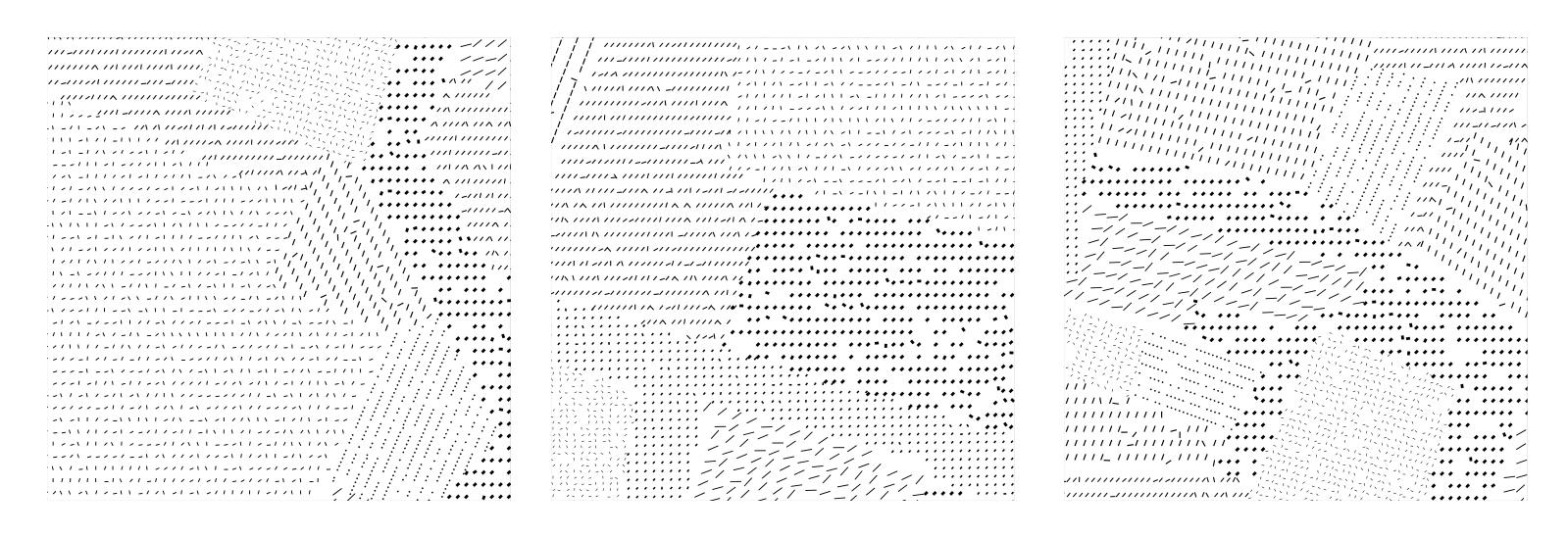 Οι τρεις πρώτες γωνίες της πλατείας αποτελούν και πάλι μία αναφορά στο παρελθόν και την ιστορία της πόλης: Η κάθε μία από αυτές αντιπροσωπεύει έναν από τους τρεις πληθυσμούς που καθόρισαν τον χαρακτήρα της πόλης στα νεότερα χρόνια: Τον Εβραϊκό, τον Μουσουλμανικό και τον Χριστιανικό. Για να το σηματοδοτήσουν αυτό οι πλάκες φέρουν ανάγλυφα και διατρήσεις που προέρχονται από την ιστορία και τα μνημεία της κάθε πληθυσμιακής ομάδας. Το ίχνος του εβραϊκού νεκροταφείου, ενός χάρτη των εβραϊκών γειτονιών μέχρι το 1940 και τα ανοίγματα της στοάς Χιρς στην γωνία που αντιστοιχεί στον εβραϊκό πληθυσμό. Χαρακτηριστικά αρχιτεκτονικά στοιχεία από το Μπέη Χαμάμ και το Γενί Τζαμί και το σχήμα της μουσουλμανικής ‘γειτονιάς’ πριν τη φωτιά στη γωνία που αντιστοιχεί στον μουσουλμανικό πληθυσμό. Οι αναλογίες και το σχήμα το αψίδων της κρύπτης του ναού της Αγίου Δημητρίου και της Αχειροποίητου καθώς και το περίγραμμα της χριστιανικής περιοχής για τη γωνία που αντιστοιχεί στον Χριστιανικό πληθυσμό.