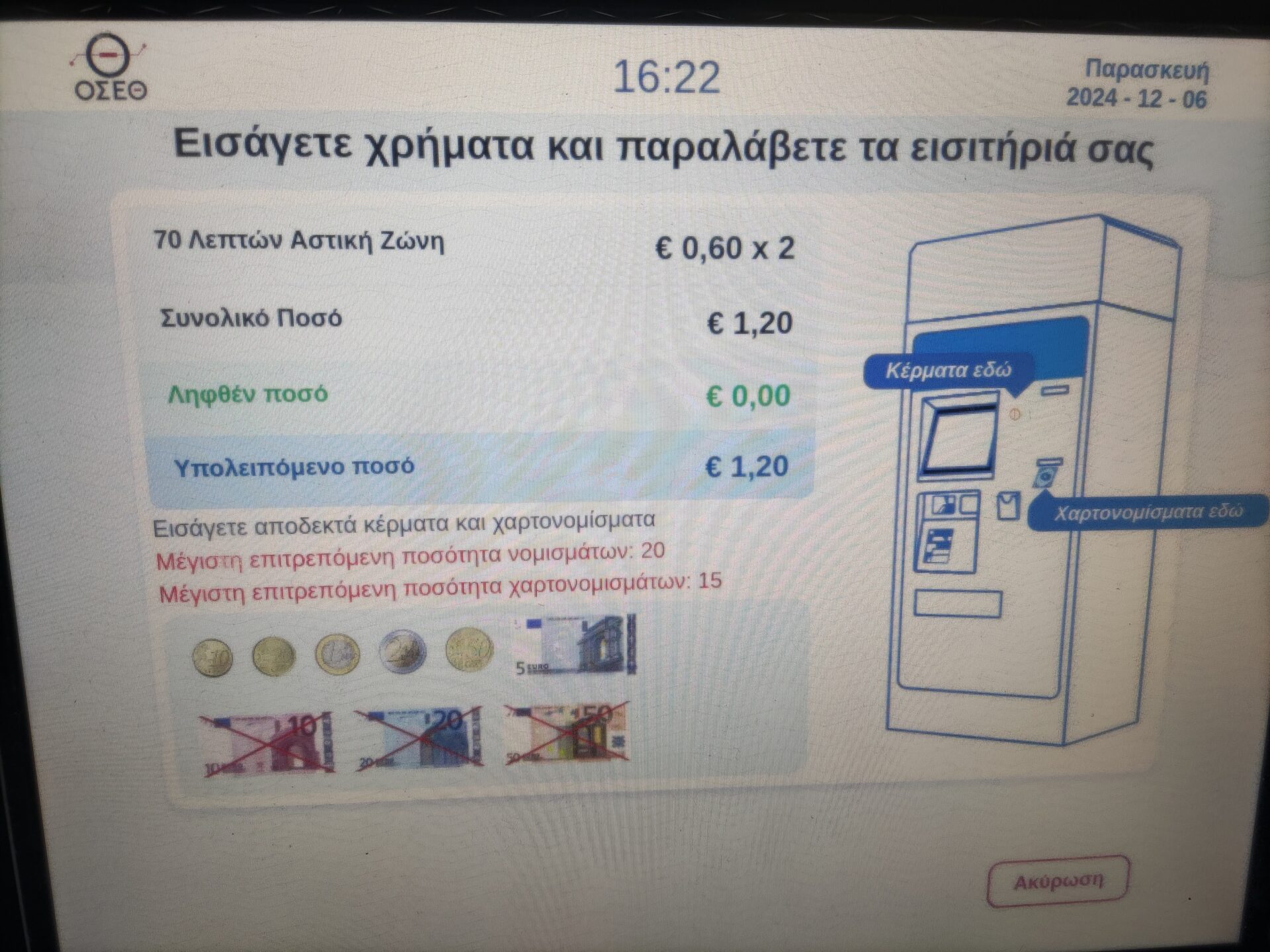 Ξεκίνησε η λειτουργία των αυτόματων πωλητών που διαθέτουν εισιτήρια μόνο για τα λεωφορεία. Όμως, και σε αυτούς υπάρχουν προβλήματα πληρωμής