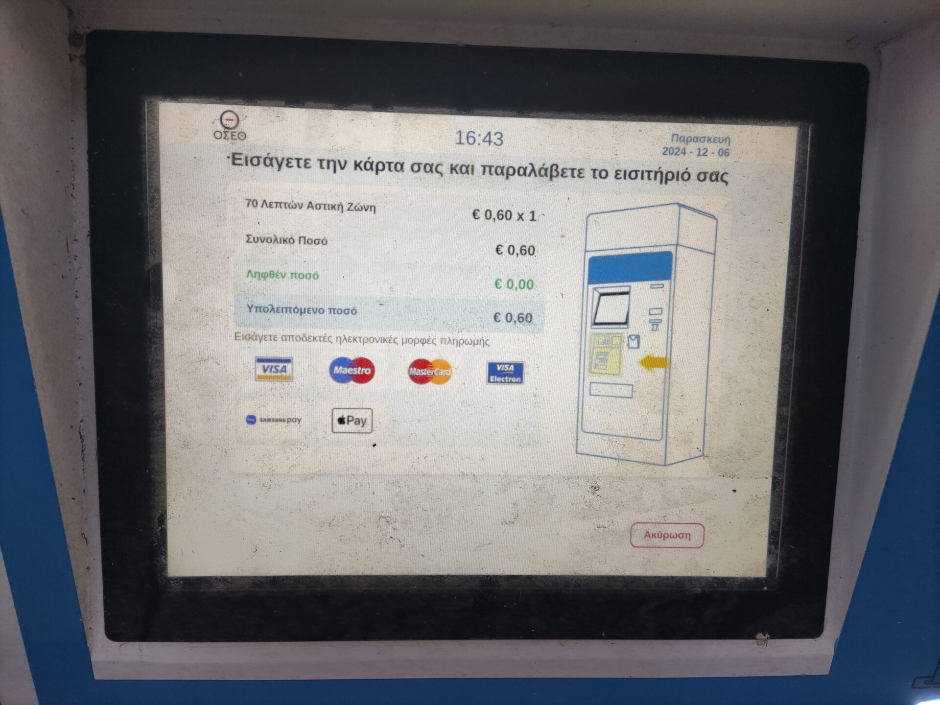 Ωστόσο, τα προβλήματα που συναντούμε στους αυτόματους πωλητές του μετρό δεν λείπουν και εδώ. Συγκεκριμένα, επιτρέπονται μόνο χαρτονομίσματα των 5 ευρώ, με τις άλλες επιλογές να είναι «κλειδωμένες». Επίσης, στον πωλητή του Ν.Σ. Σταθμού δεν υπάρχει καν διαθέσιμη η επιλογή για πληρωμή με κάρτα, ενώ στον πωλητή της ΧΑΝΘ είναι μεν διαθέσιμη αλλά οι κάρτες δεν αναγνωρίζονται και το POS βγάζει το μήνυμα: «ΠΡΟΒΛΗΜΑ ΕΠΙΚΟΙΝΩΝΙΑΣ – ΔΟΚΙΜΑΣΤΕ ΞΑΝΑ».