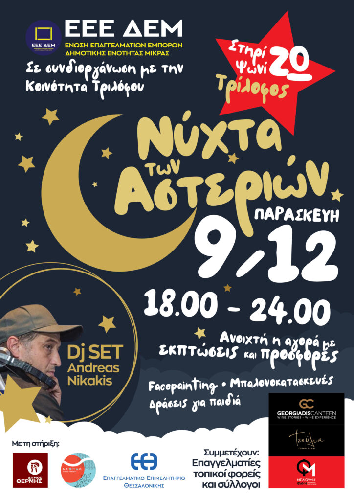 – Παρασκευή 9 Δεκεμβρίου – Κοινότητα Τριλόφου – Νύχτα των Αστεριών – Κεντρική Πλατεία και σε όλους τους κεντρικούς δρόμους – 18.00