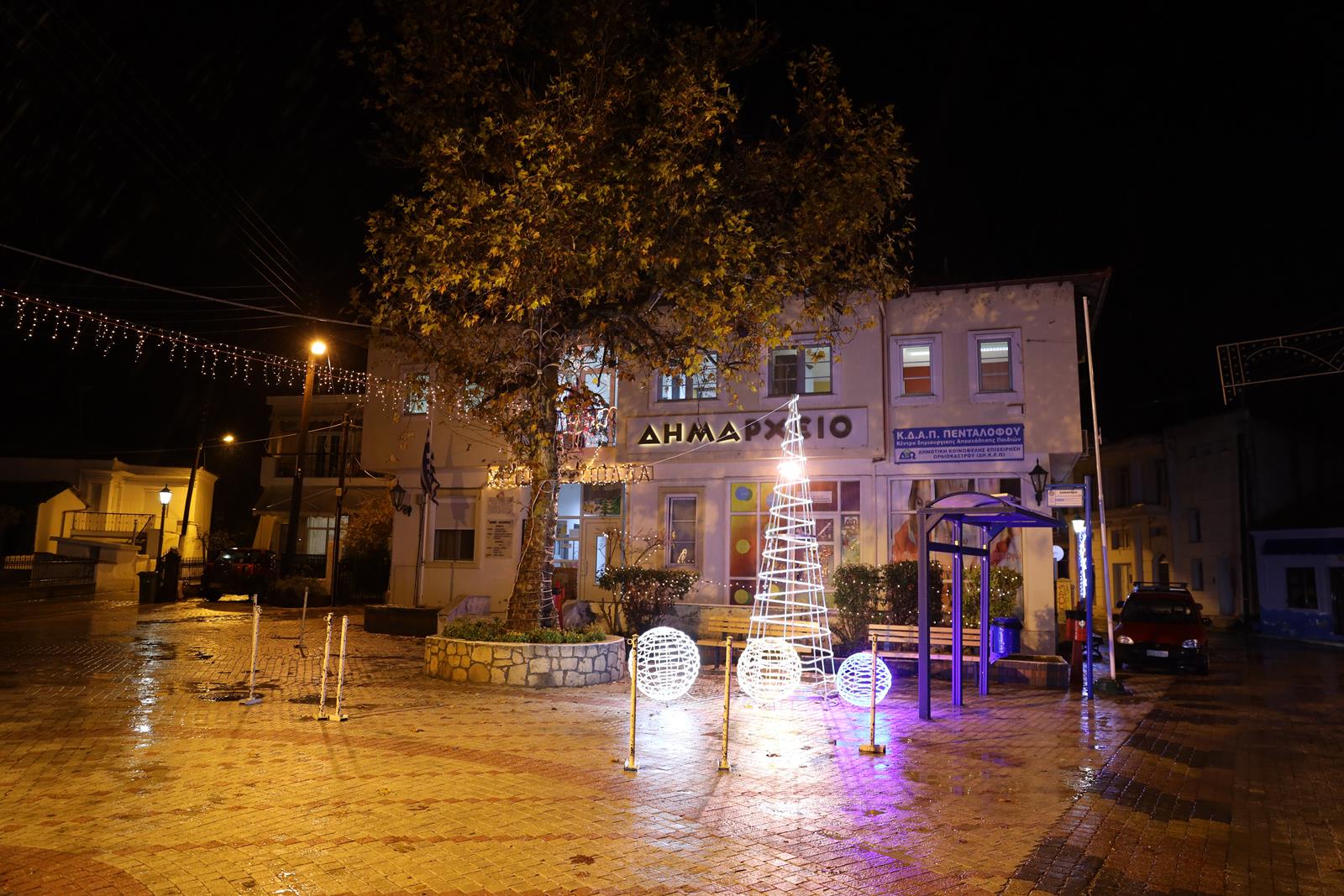 Τα λαμπιόνια στο χριστουγεννιάτικο δέντρο που είναι τοποθετημένο στην πλατεία Πενταλόφου άναψαν στις 7 το απόγευμα της Τετάρτης σε κλίμα χαράς και αισιοδοξίας. Οι εορταστικές εκδηλώσεις λόγω της έντονης βροχόπτωσης έγιναν στο γυμναστήριο του Δημοτικού Σχολείου Πενταλόφου. Την εκδήλωση άνοιξε μουσικά η Φιλαρμονική Ορχήστρα του Δήμου Ωραιοκάστρου, παίζοντας χριστουγεννιάτικα τραγούδια. Τη σκυτάλη πήραν μέλη της χορωδίας του ΚΑΠΗ Πενταλόφου, που έψαλλαν τα κάλαντα. Στη συνέχεια στήθηκε χριστουγεννιάτικο γλέντι με τα Χάλκινα της Γουμένισσας και παραδοσιακούς χορούς που παρουσίασαν τα παιδιά του χωριού. Αμέσως μετά τα παιδιά συμμετείχαν σε δράση με χριστουγεννιάτικο face painting και διασκέδασαν με τον Αϊ Βασίλη, με ξωτικά και ξυλοπόδαρο.
