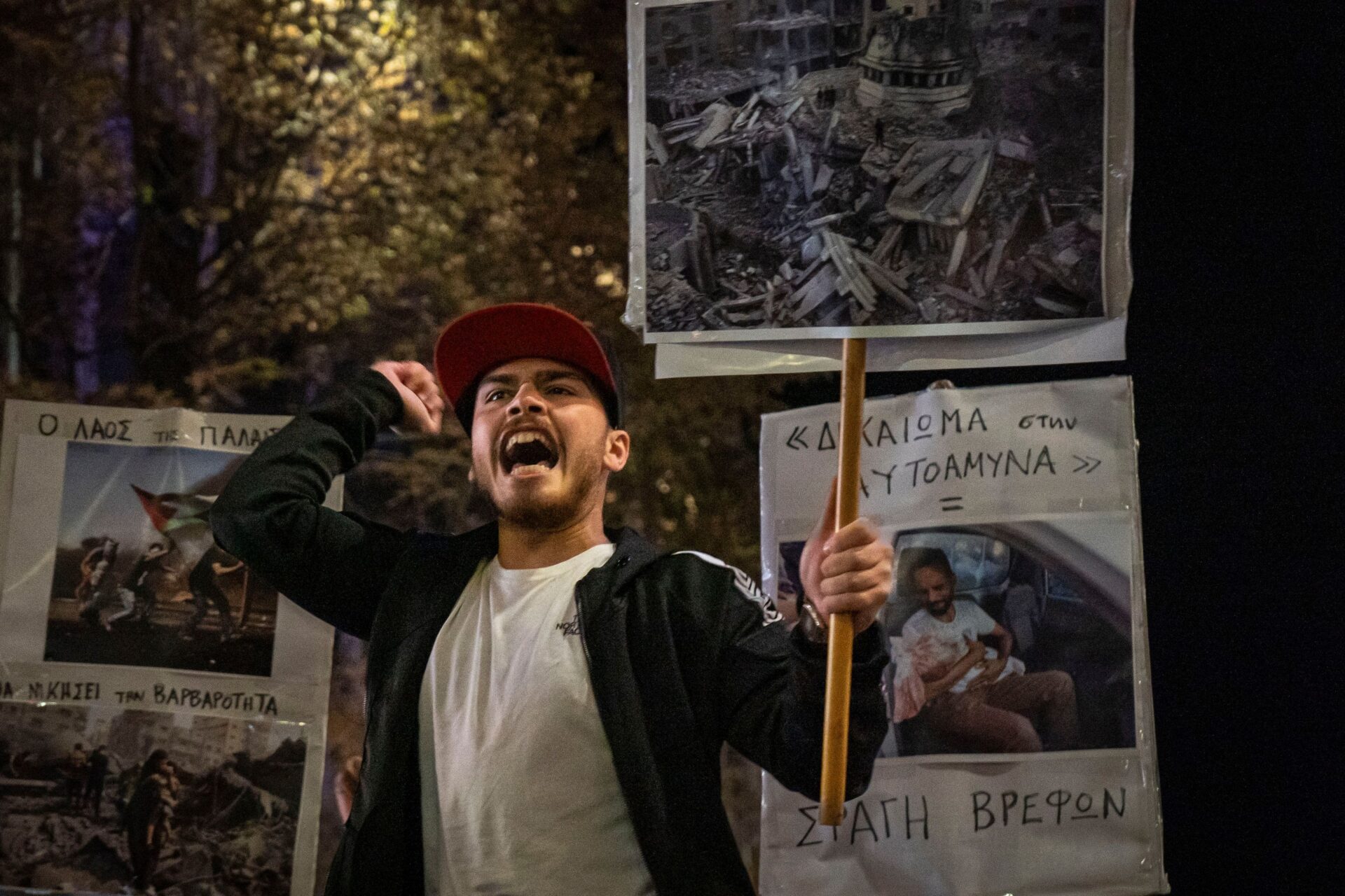 «Λευτεριά στην Παλαιστίνη», «Νίκη στην Παλαιστίνη», «Δεν υπάρχει ειρήνη χωρίς δικαιοσύνη», «Δικαίωμα στην αυτοάμυνα», «Σφαγή βρεφών» μερικά από τα συνθήματα και τα μηνύματα που αναγράφονταν στα πανό κατά τη διάρκεια της πορείας.